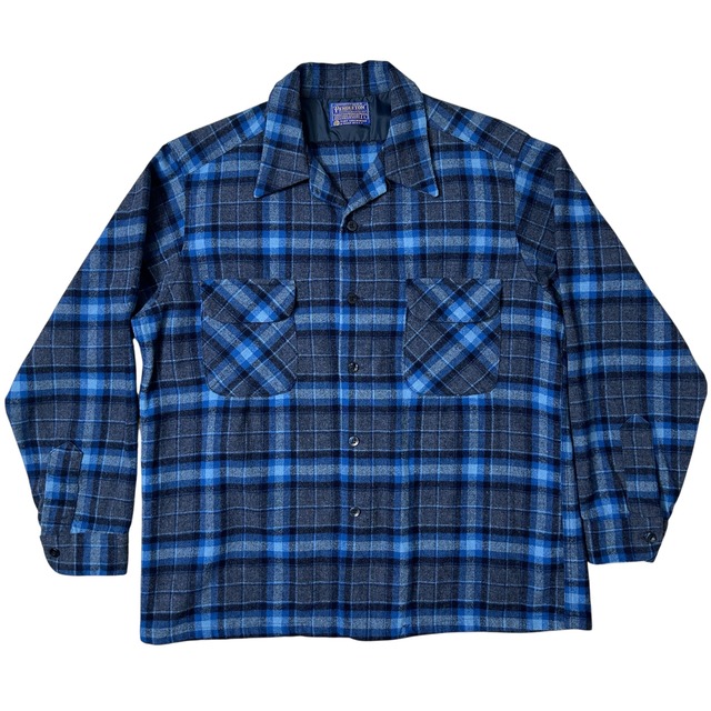 USA製 70s pendleton ペンドルトン ボードシャツ 開襟 オープンカラー 好配色 L ブルー グレー ブラック