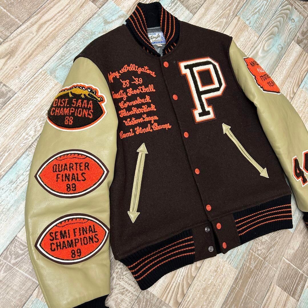 WHITESVILLE ホワイツビル スタジャン アワードジャケット Flying Alligators フライングアリゲーターズ 刺繍 38 ブラウン P