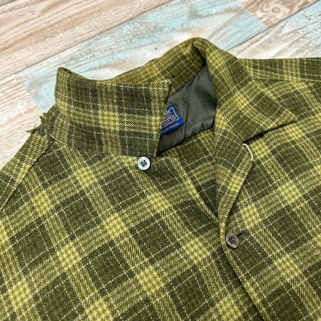 60s PENDLETON ペンドルトン ボードシャツ ウールシャツ 開襟 XL グリーン系 ダメージあり