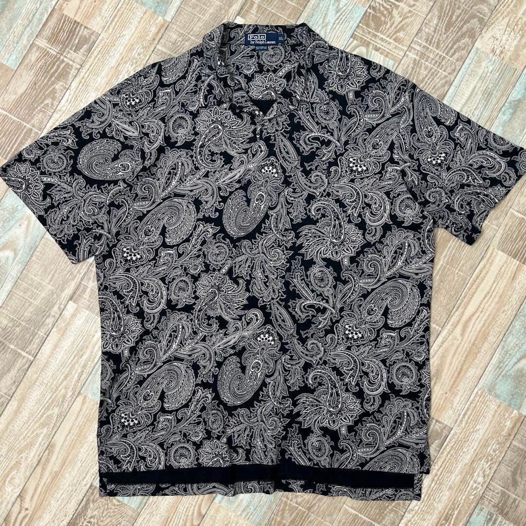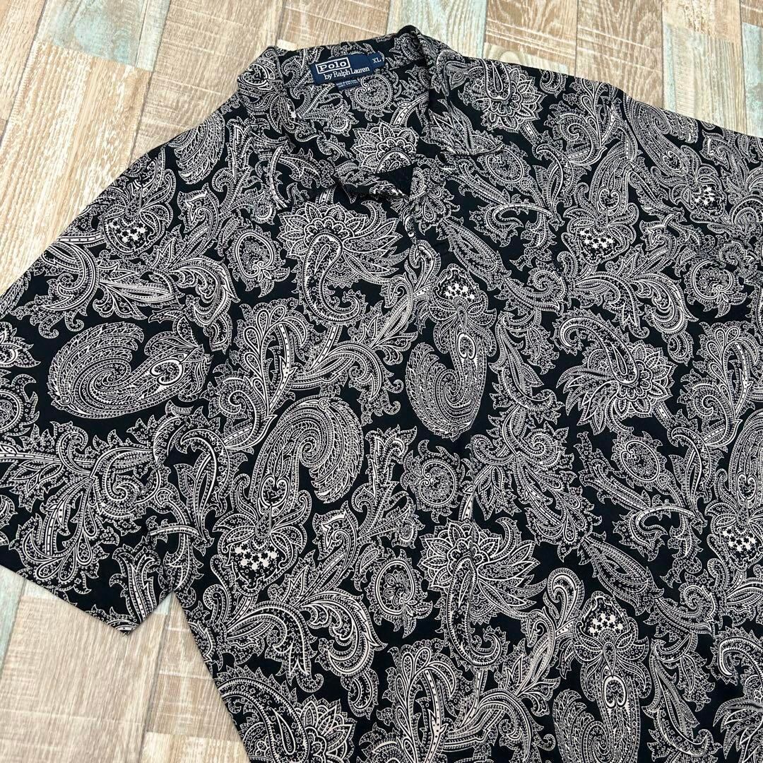 ①希少 90s Polo by Ralph Lauren ポロ バイラルフローレン ポロシャツ ペイズリー 総柄 XL 黒