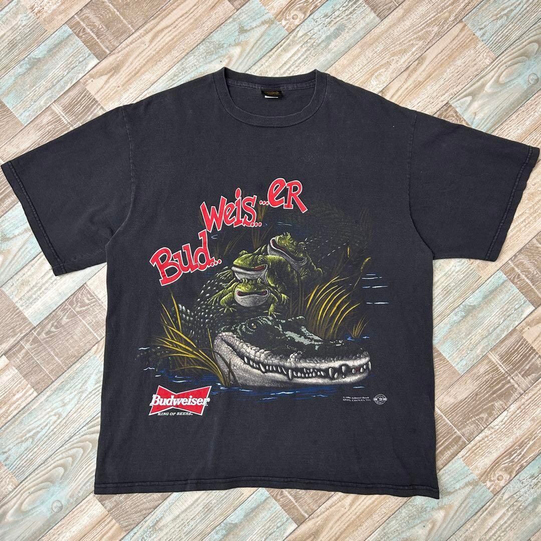 90s Budweiser バドワイザー Tシャツ ワニ カエル XL ブラック フェード 両面