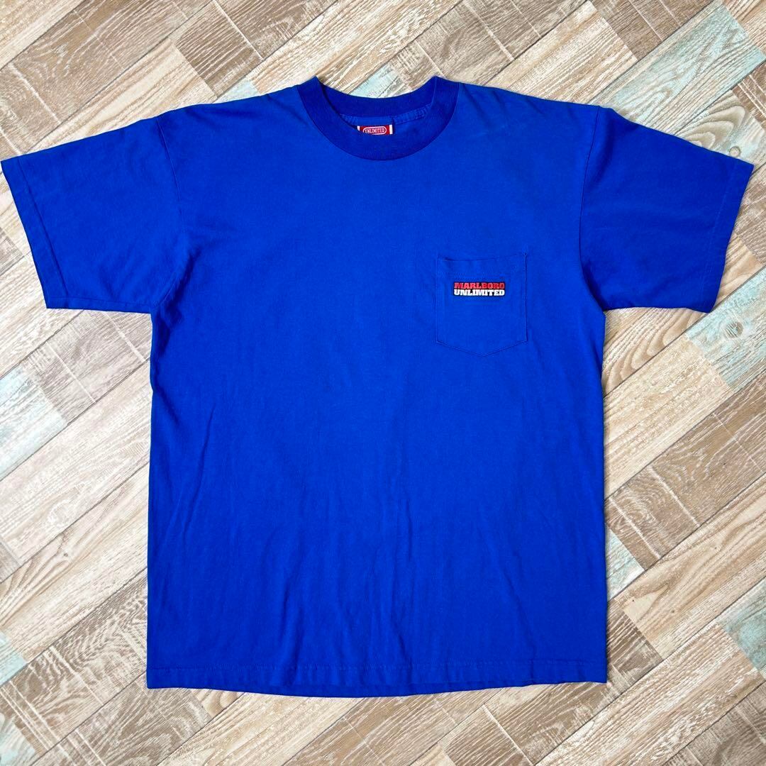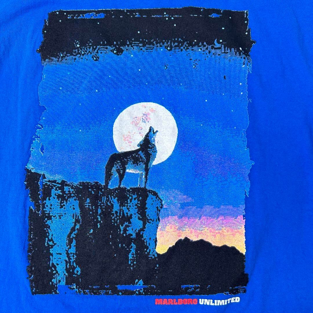 USA製 90s Marlboro マールボロ マルボロ Tシャツ ウルフ コヨーテ 青 ブルー XL