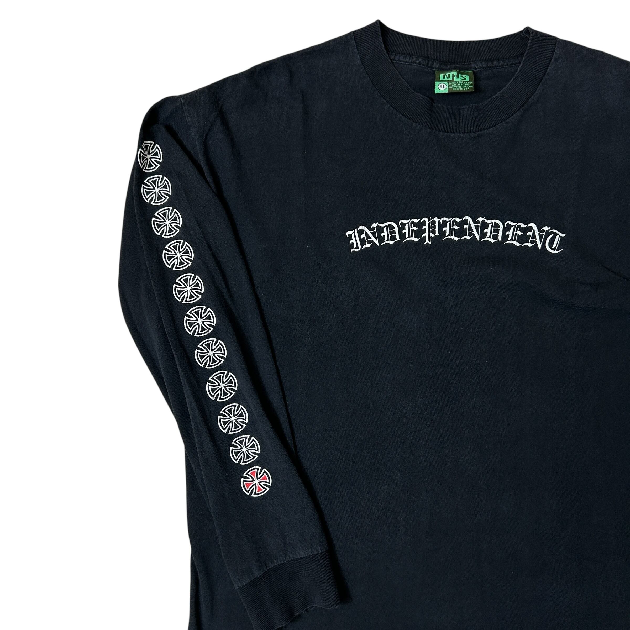 USA製 INDEPENDENT インディペンデント NHS カラータグ ロンT アイアンクロス オールドイングリッシュ 袖プリ ブラック XL