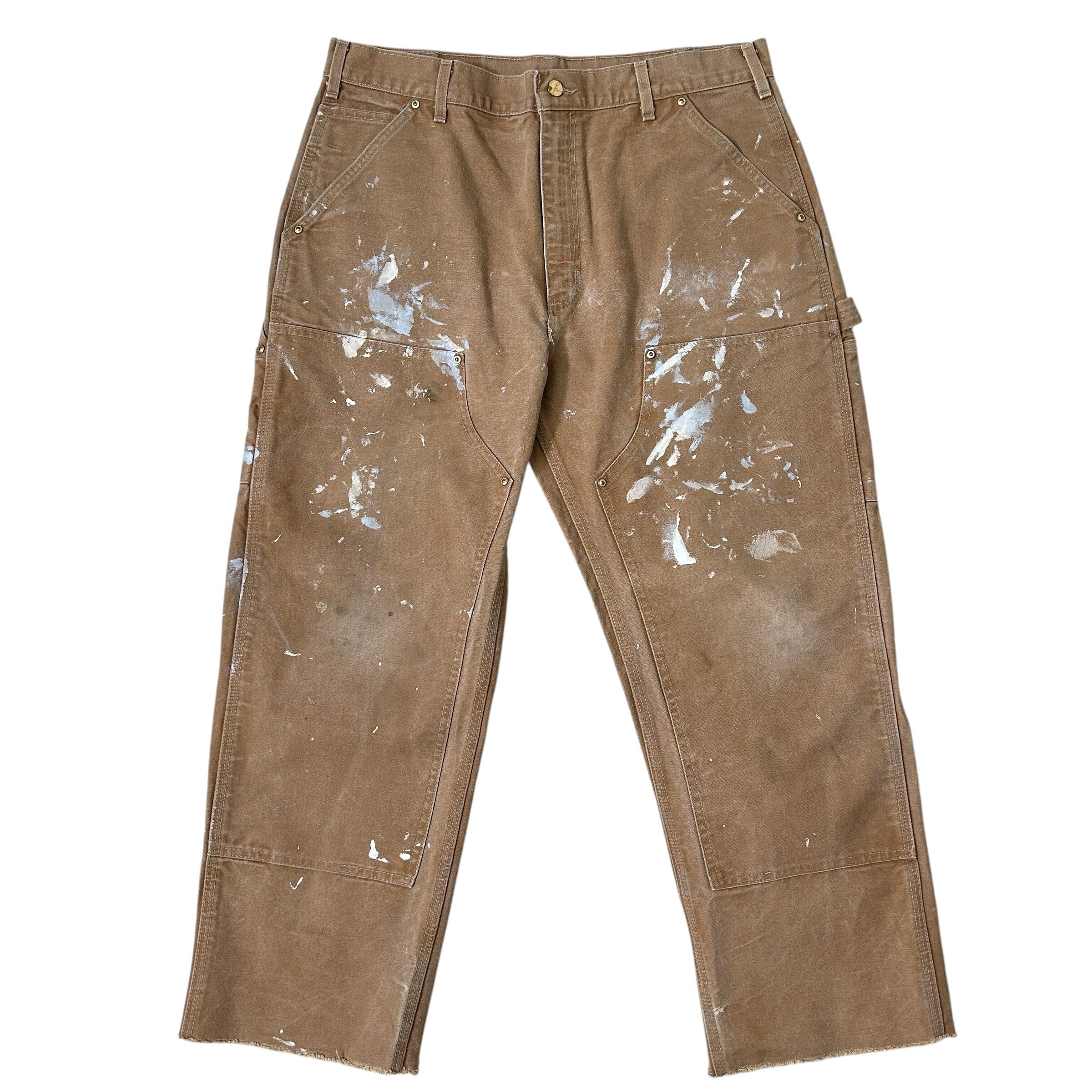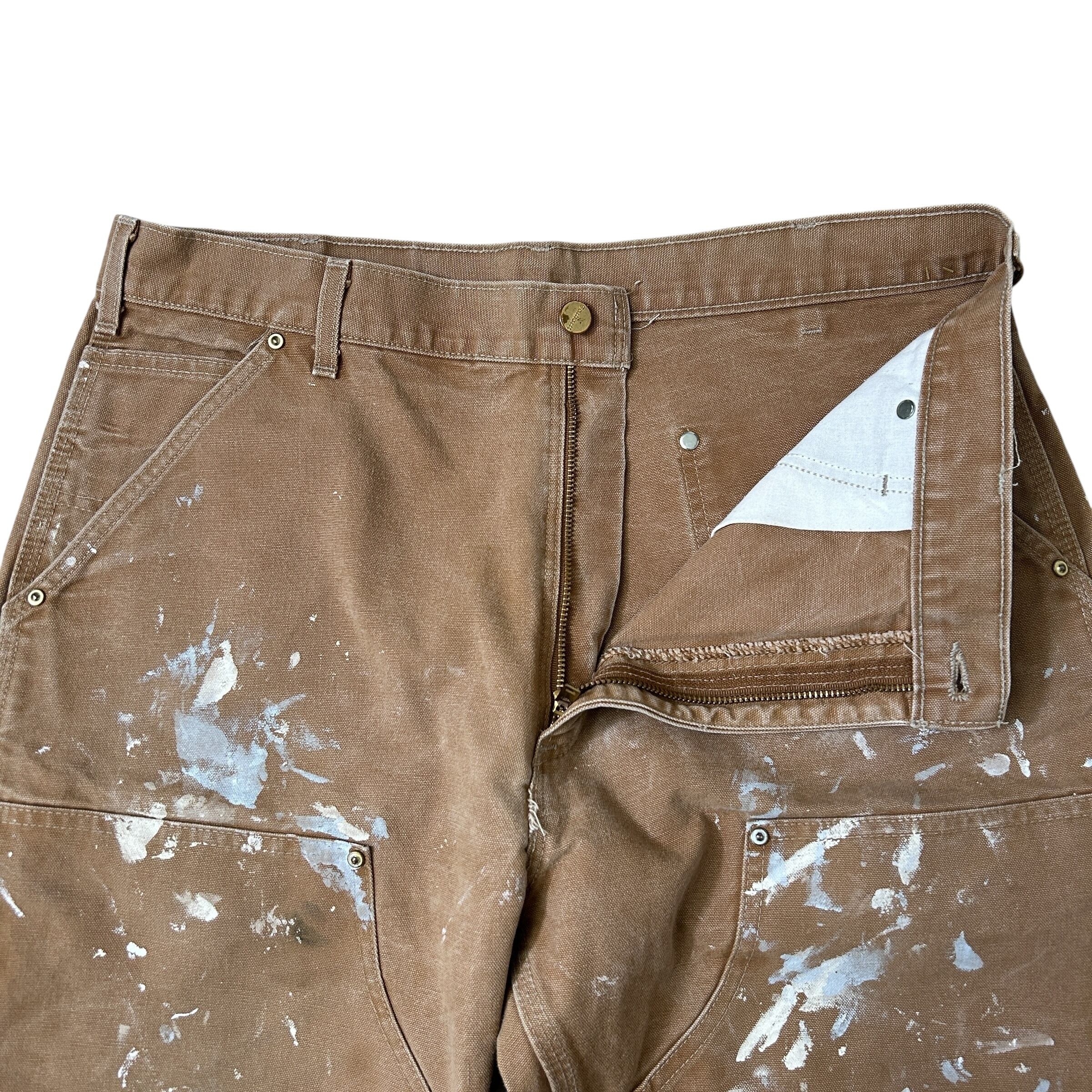 雰囲気抜群 USA製 carhartt カーハート ダブルニー ペインターパンツ ペンキ カットオフ ブラウン W36