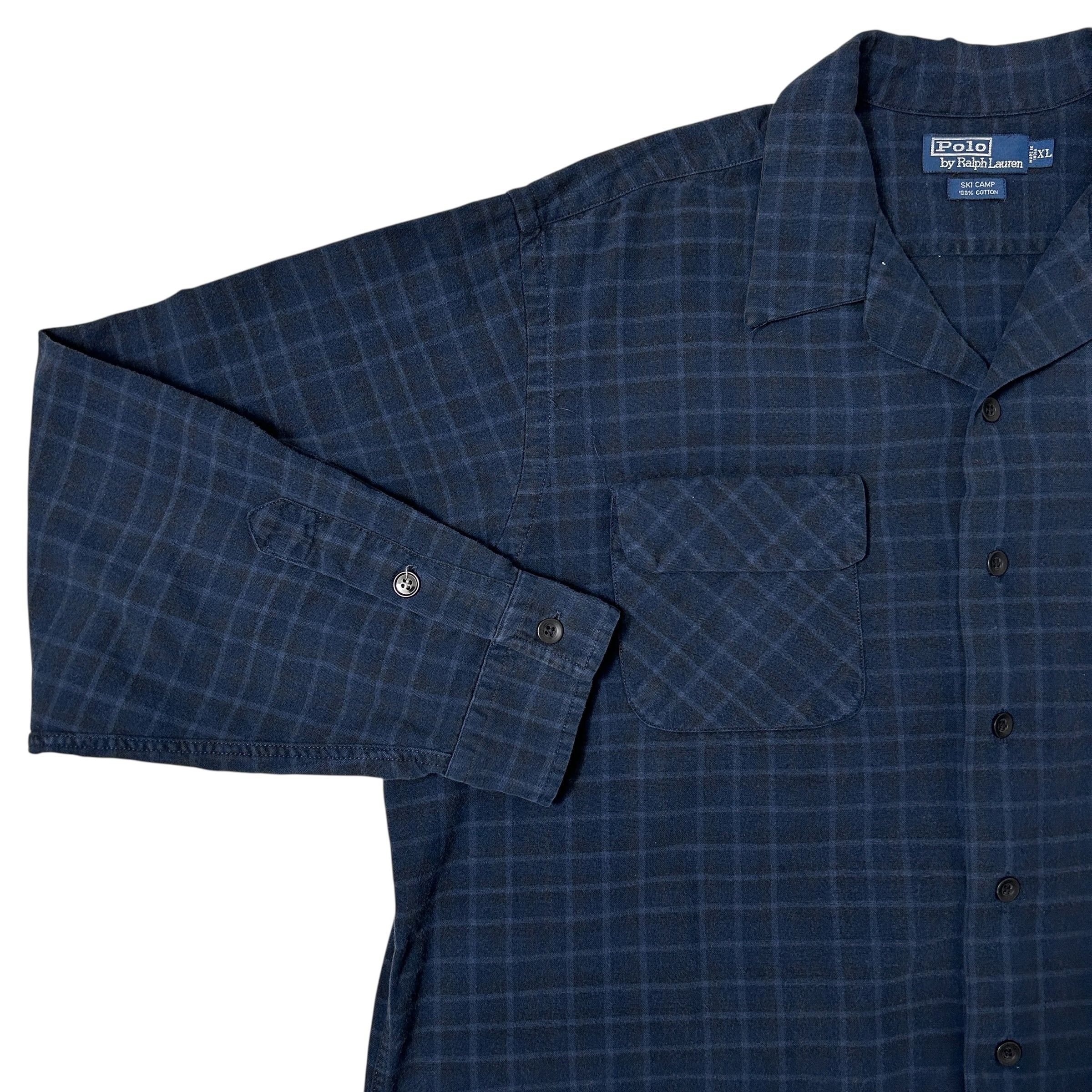 90s Polo by Ralph Lauren ポロ バイ ラルフローレン SKI CAMP ネルシャツ 開襟 オープンカラー BOXシルエット XL ネイビー
