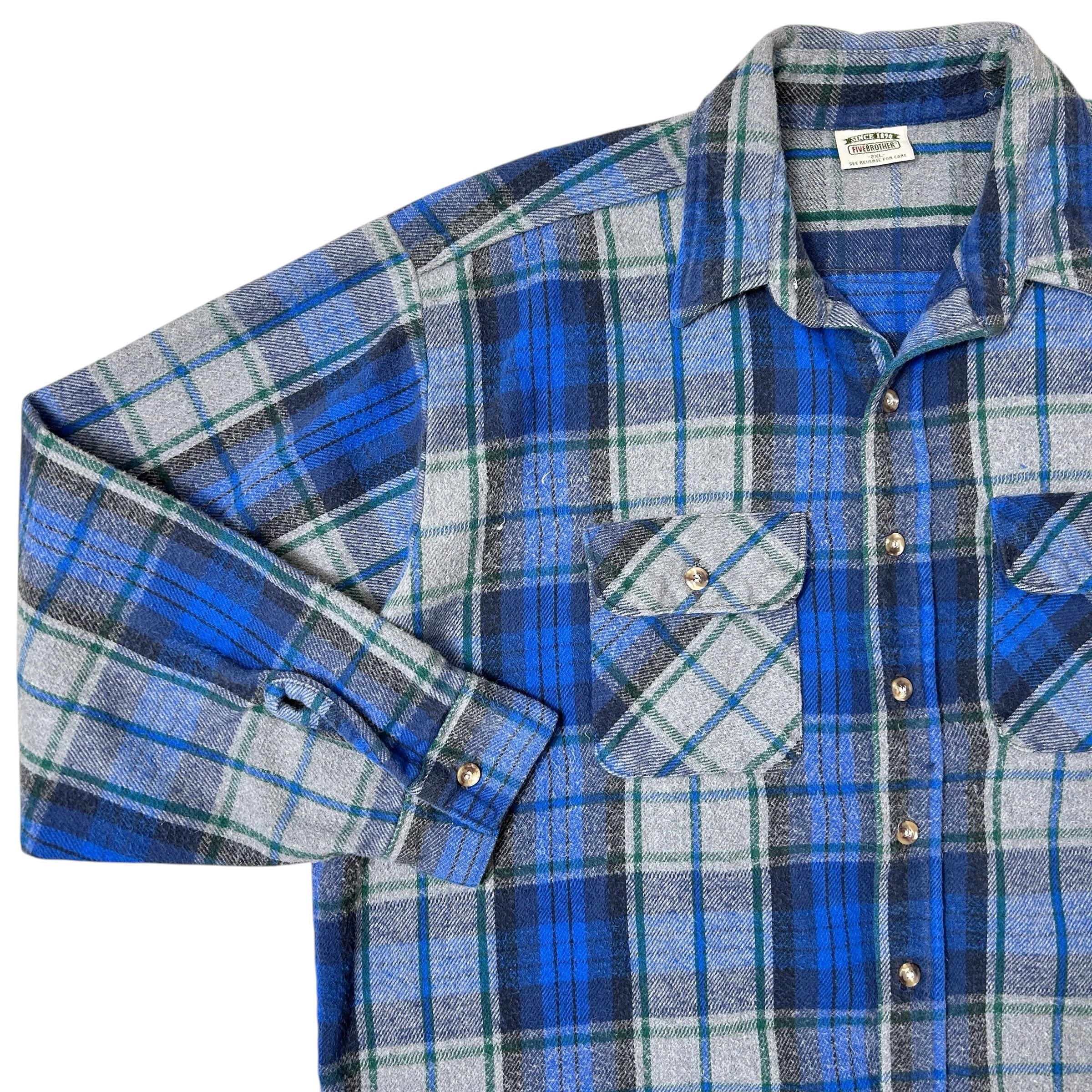 90s FIVE BROTHER ファイブラブラザー ネルシャツ 好配色 2XL ブルー系 BOXシルエット