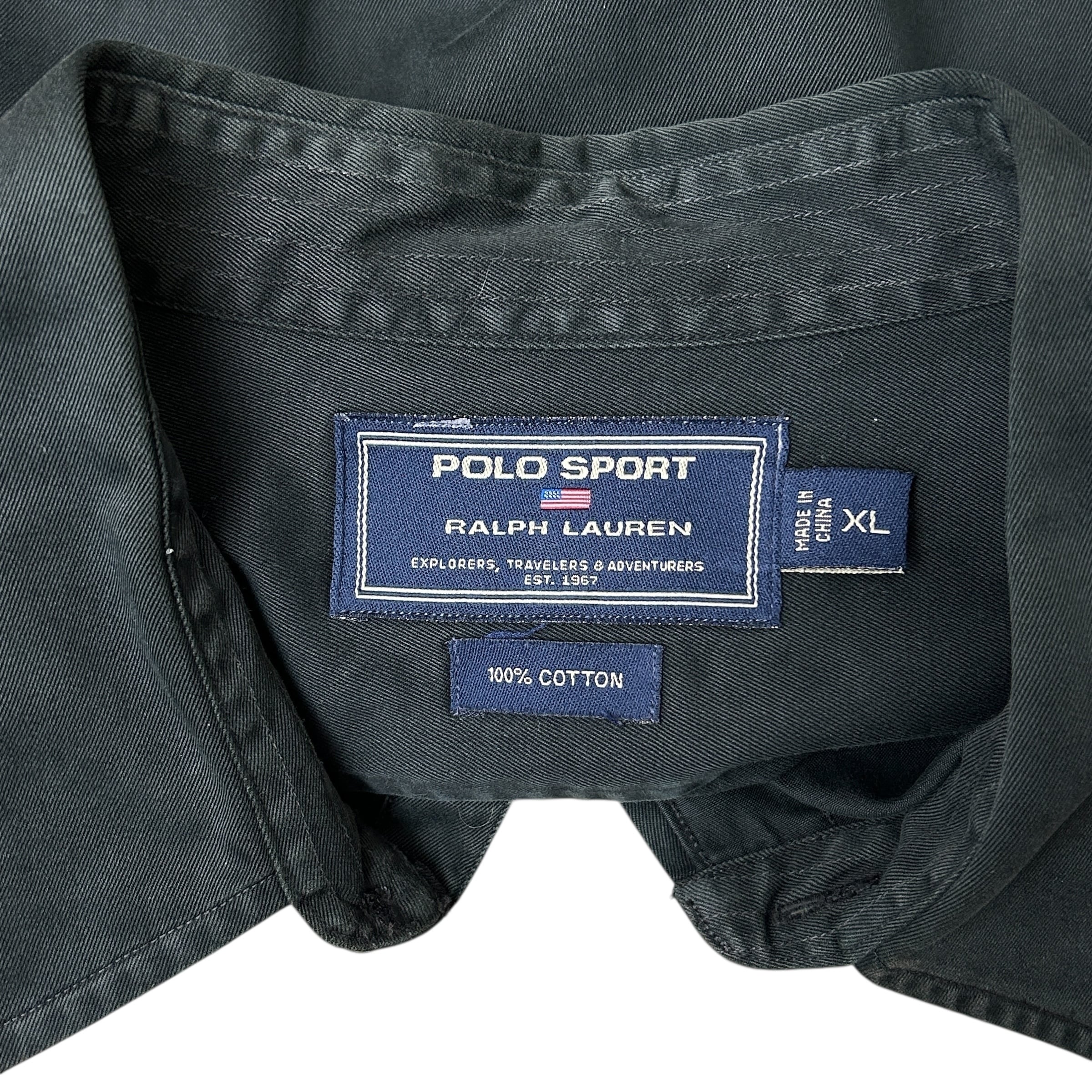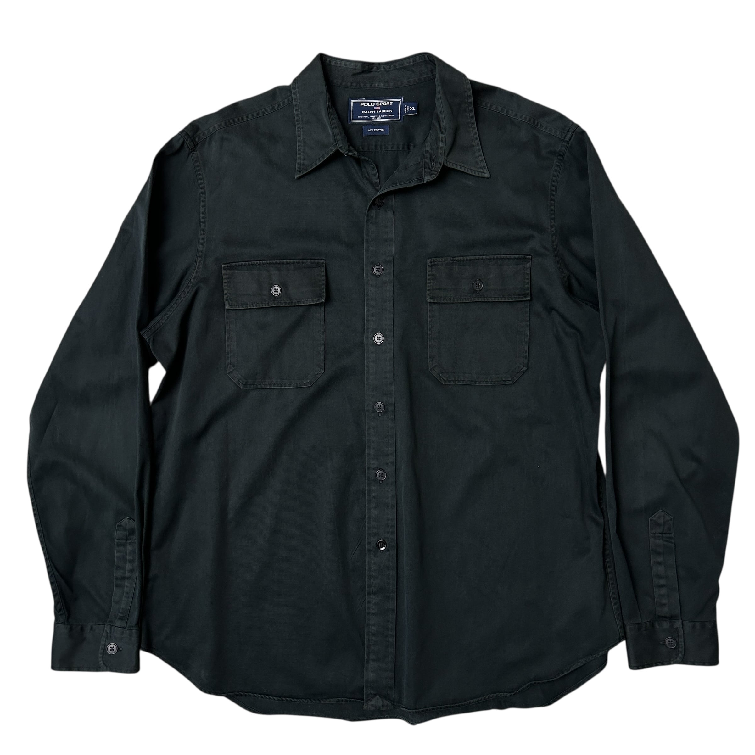 90s POLO SPORT RALPH LAUREN ポロスポーツ ラルフローレン 長袖シャツ ブラック 無地 ダブルフラップ XL