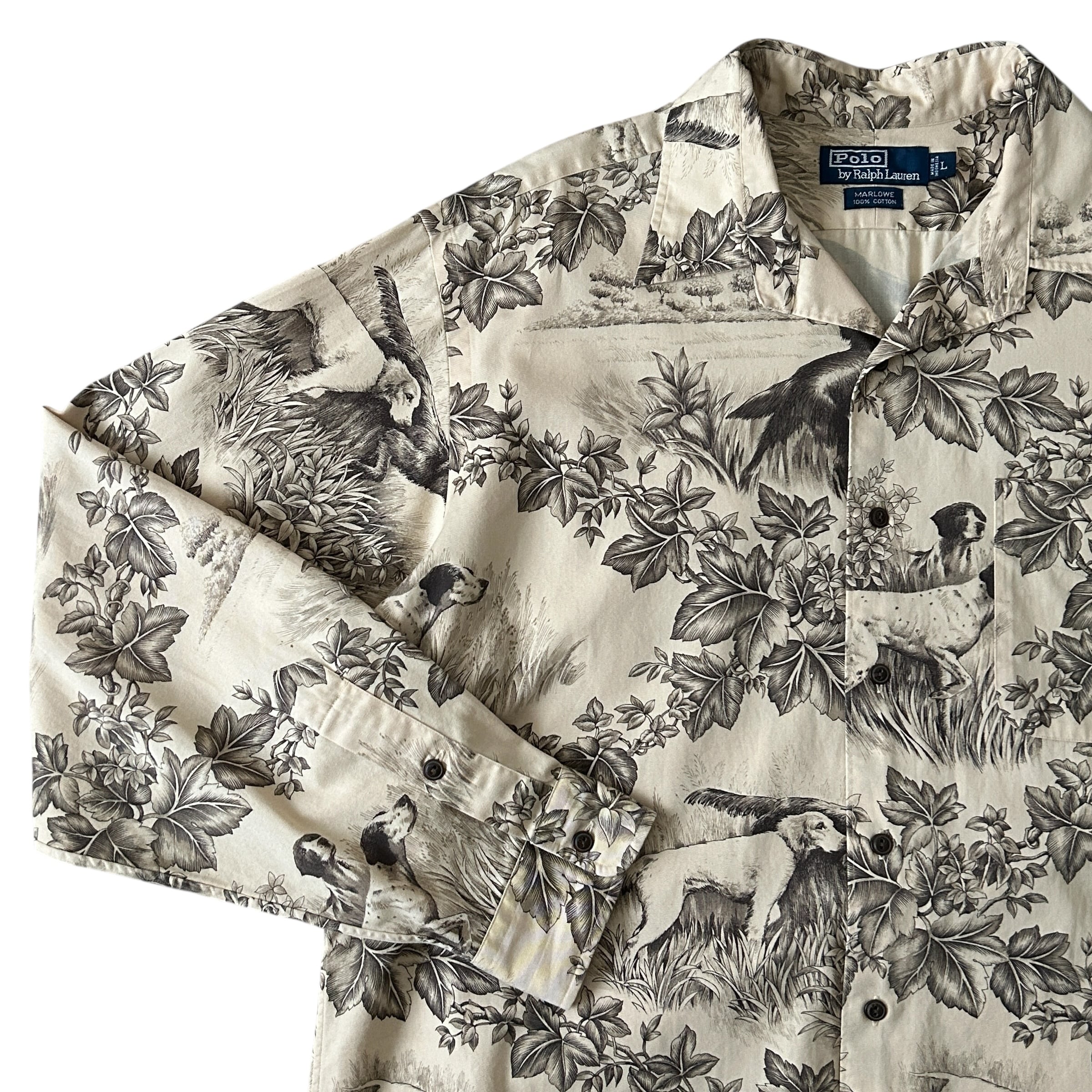 90s Polo by Ralph Lauren ポロ バイ ラルフローレン MARLOWE 柄シャツ ハンティング 犬柄 L
