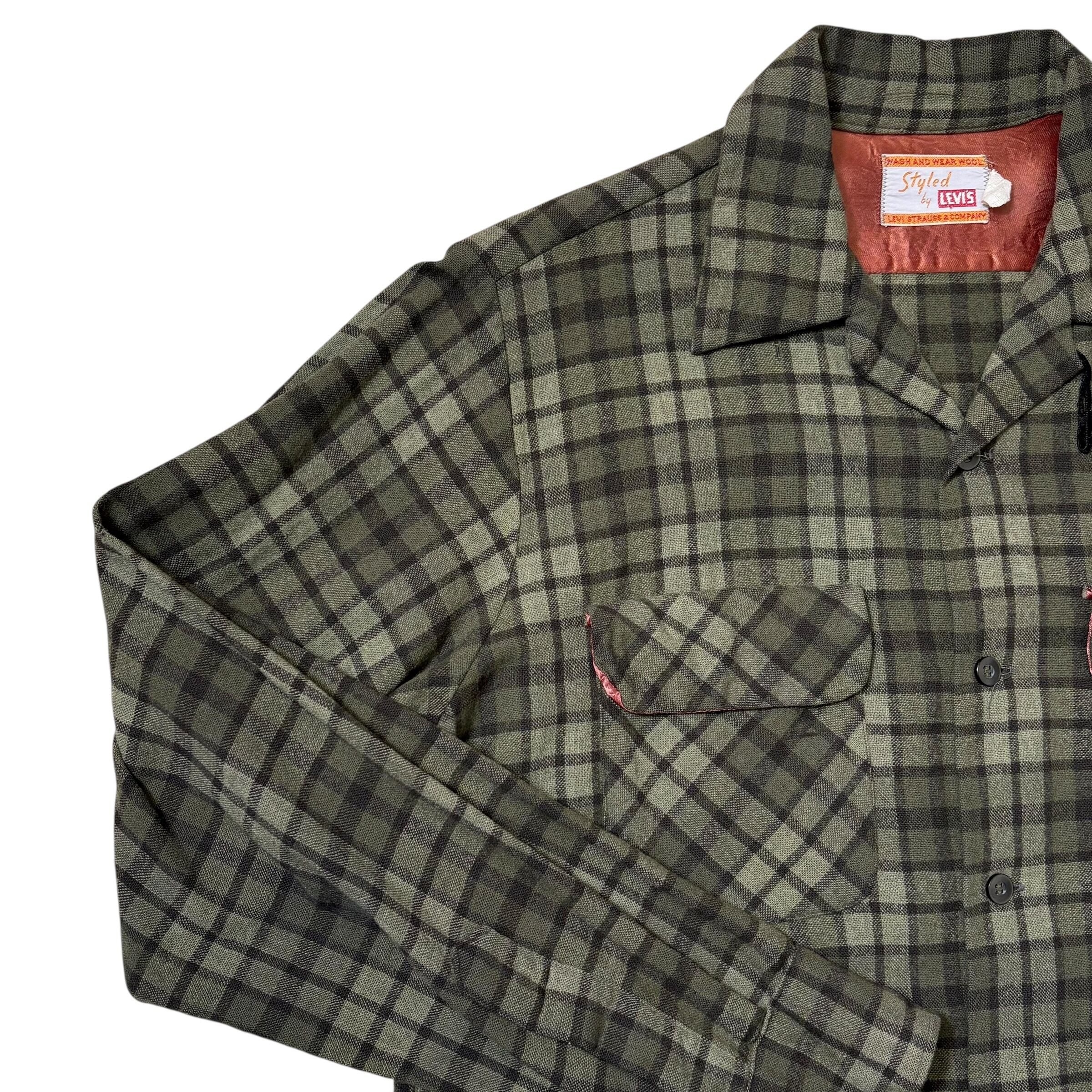 60s Styled by Levis リーバイス ボードシャツ 開襟 オープンカラー グリーン M相当