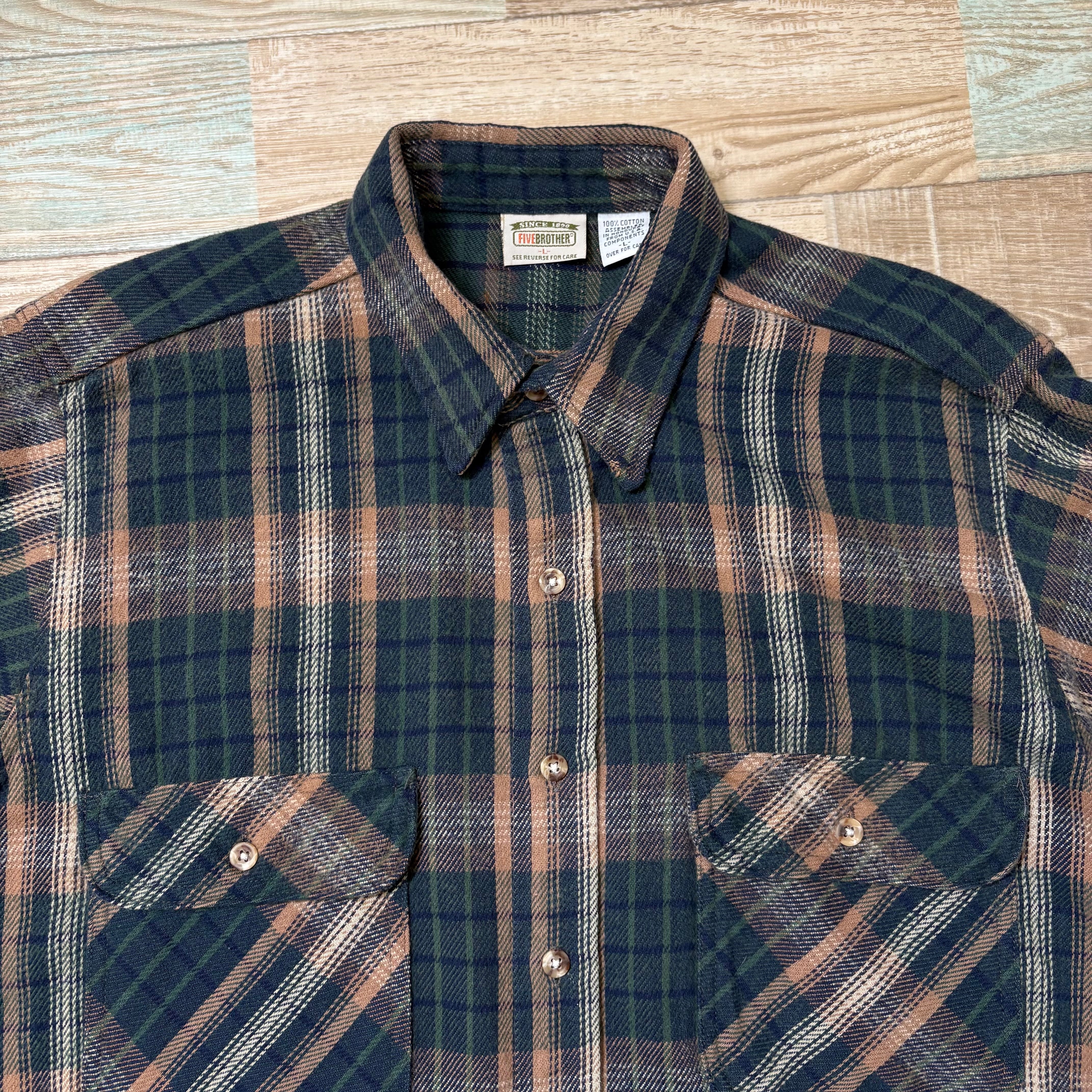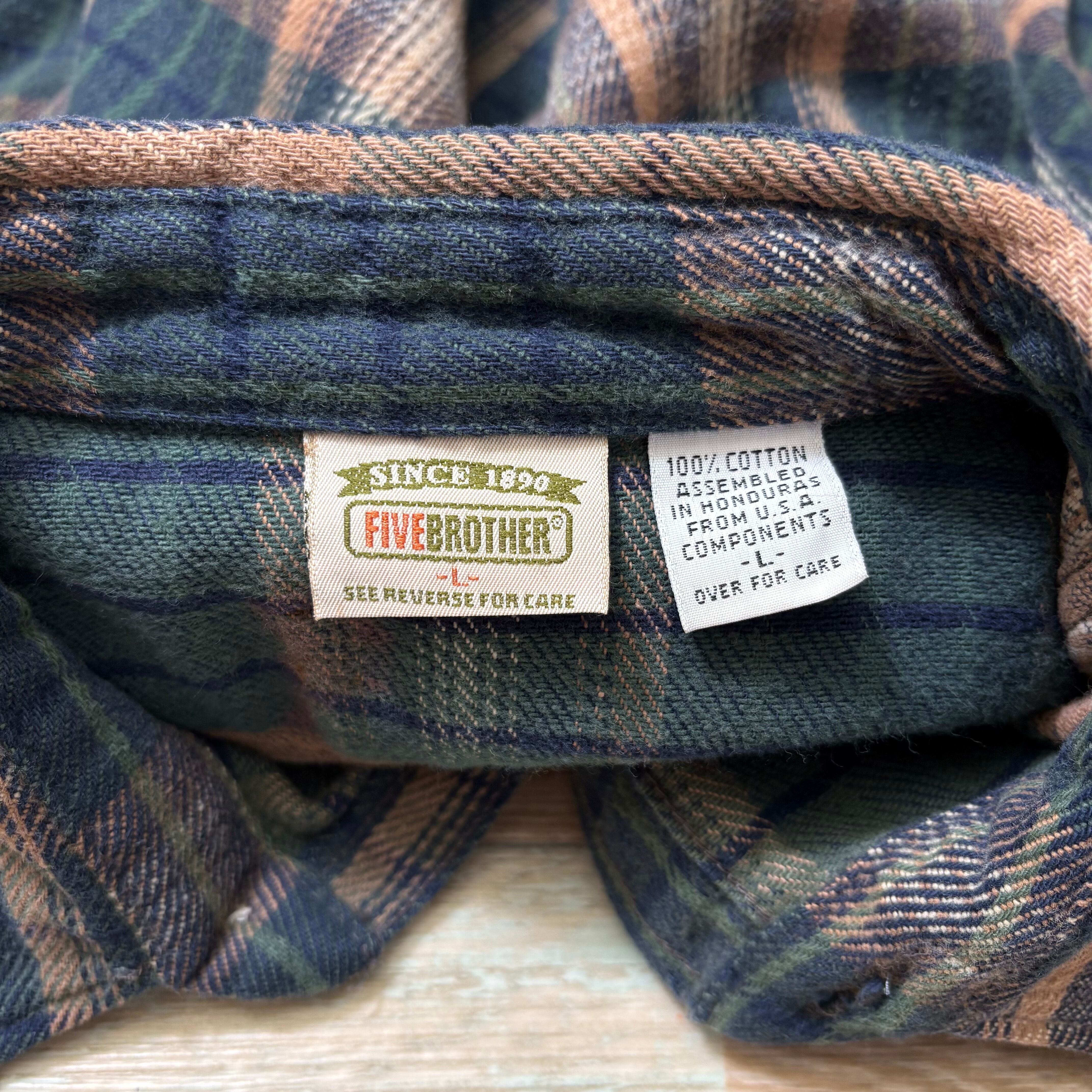 90s FIVEBROTHER ファイブブラザー ネルシャツ グリーン L