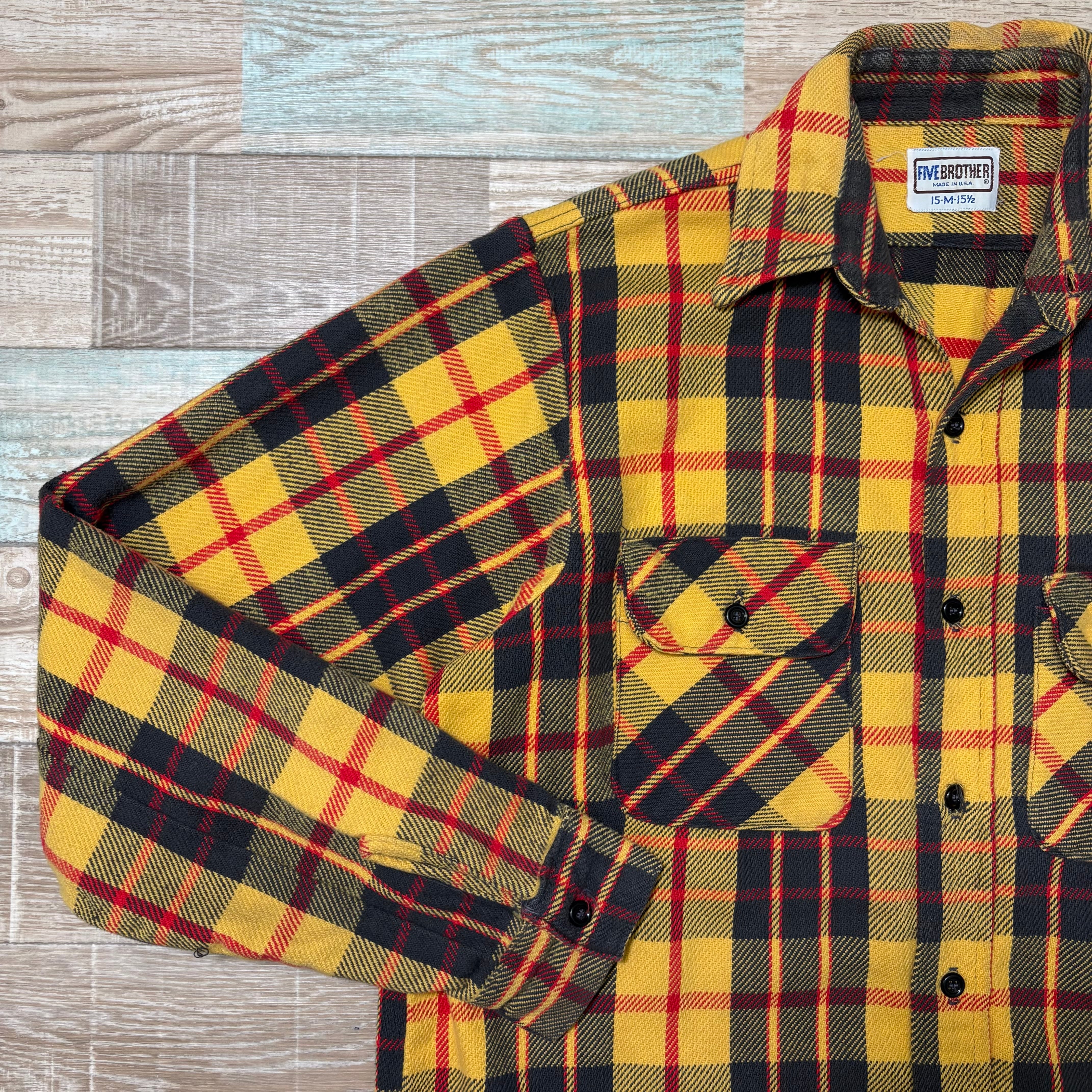 70s FIVEBROTHER ファイブブラザー ネルシャツ 黄 黒 赤 M TALLっぽいサイズ感