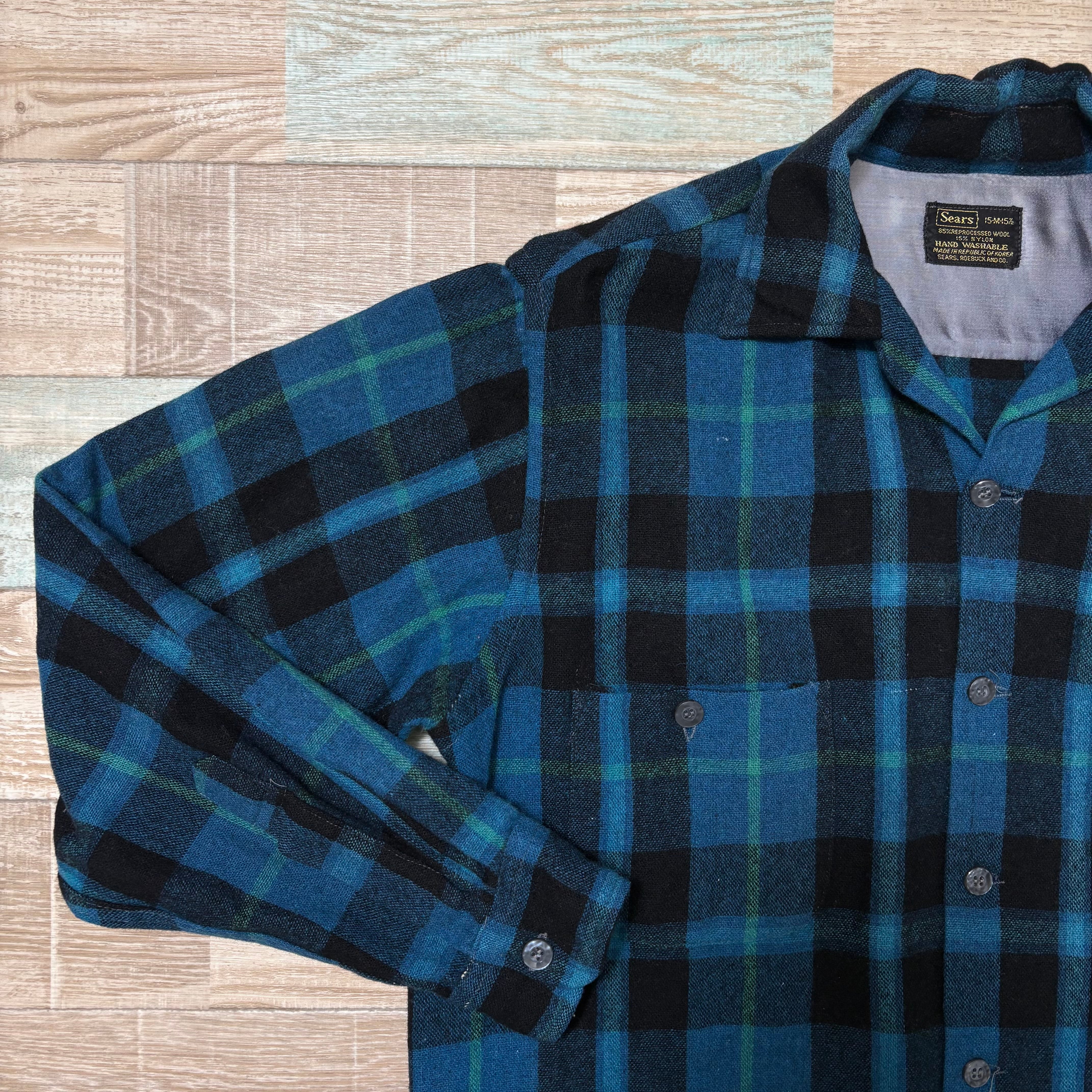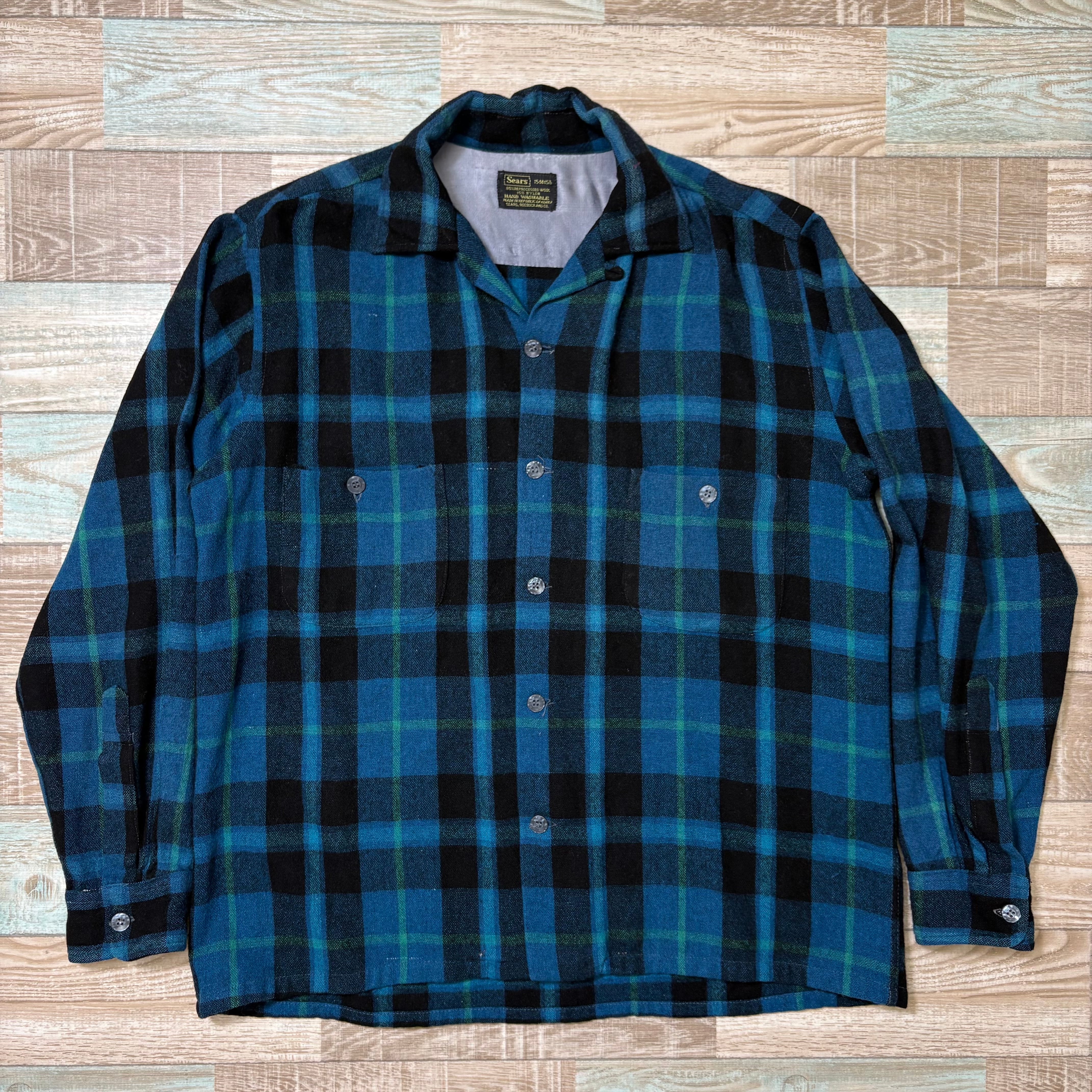 Sears シアーズ ボードシャツ ウールシャツ 青 黒 M
