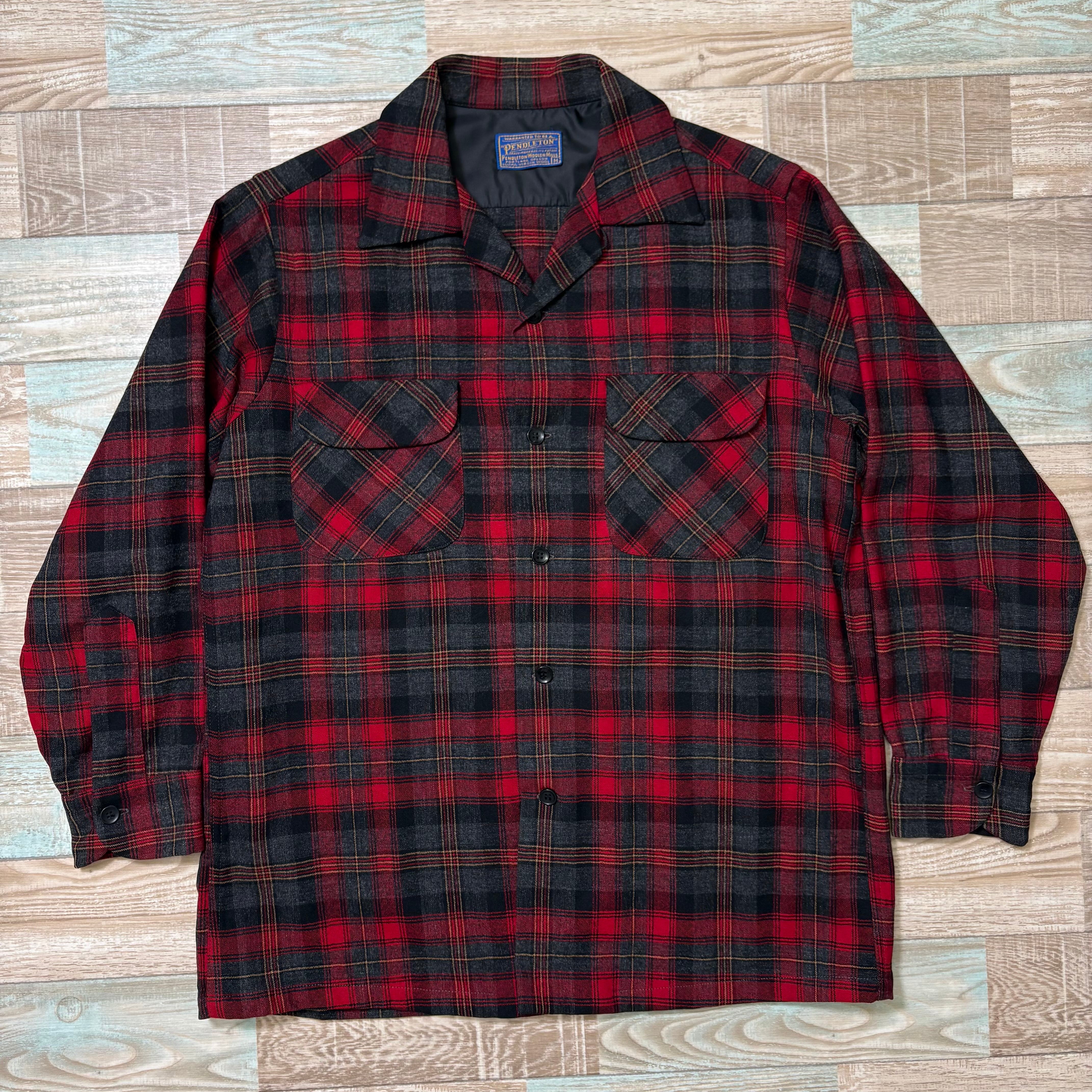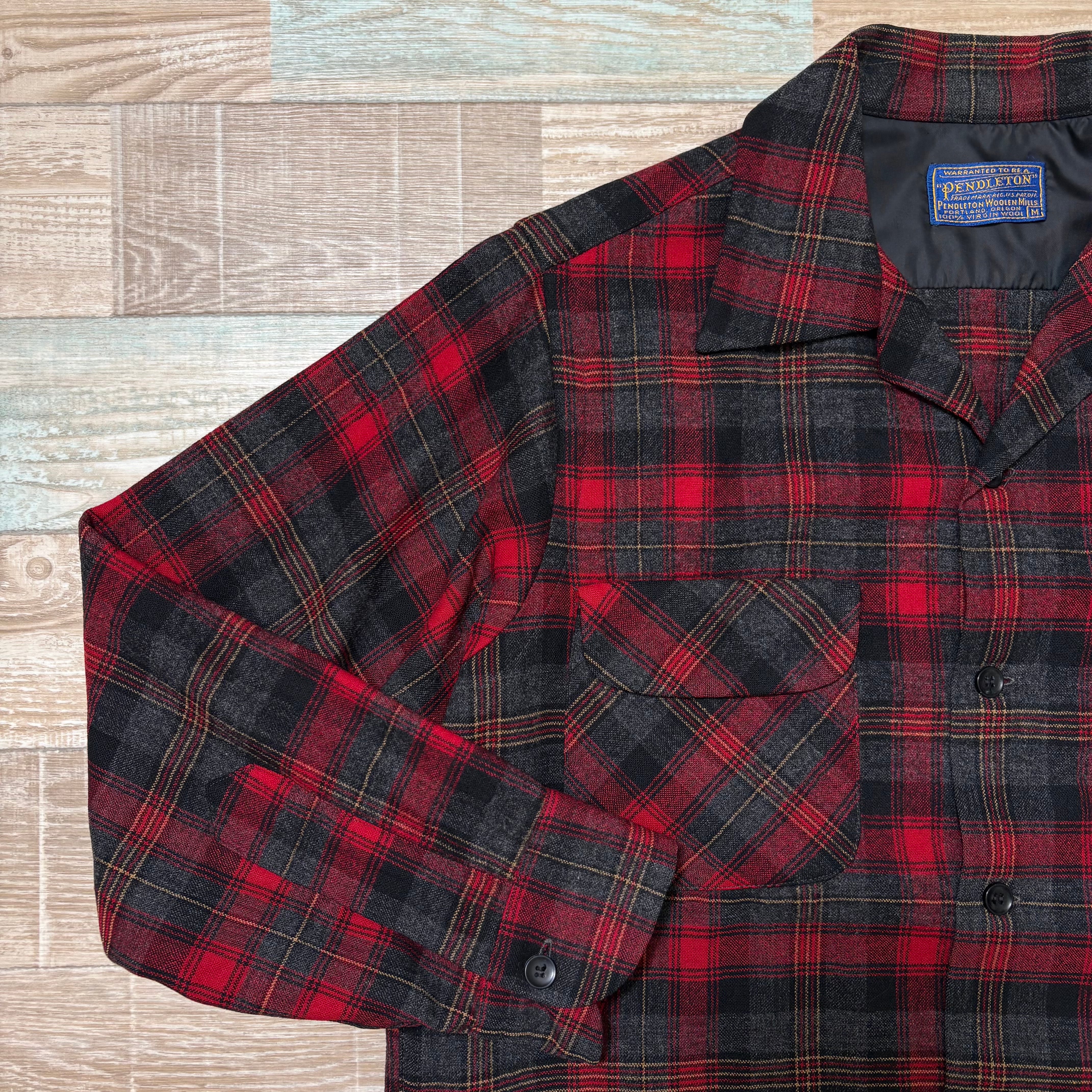 50s PENDLETON ペンドルトン ボードシャツ ウールシャツ 黒 赤 灰 M 縮みほぼ無し