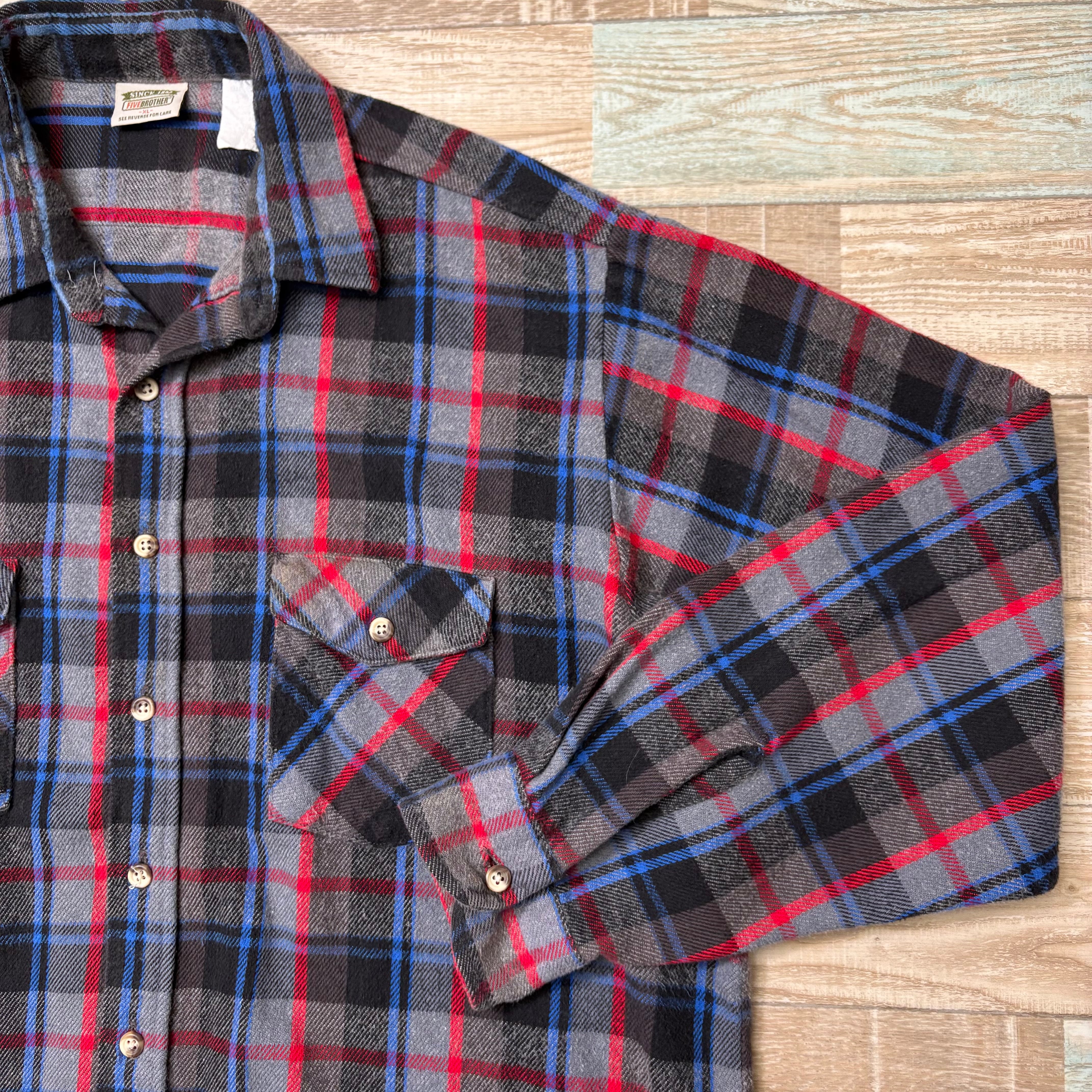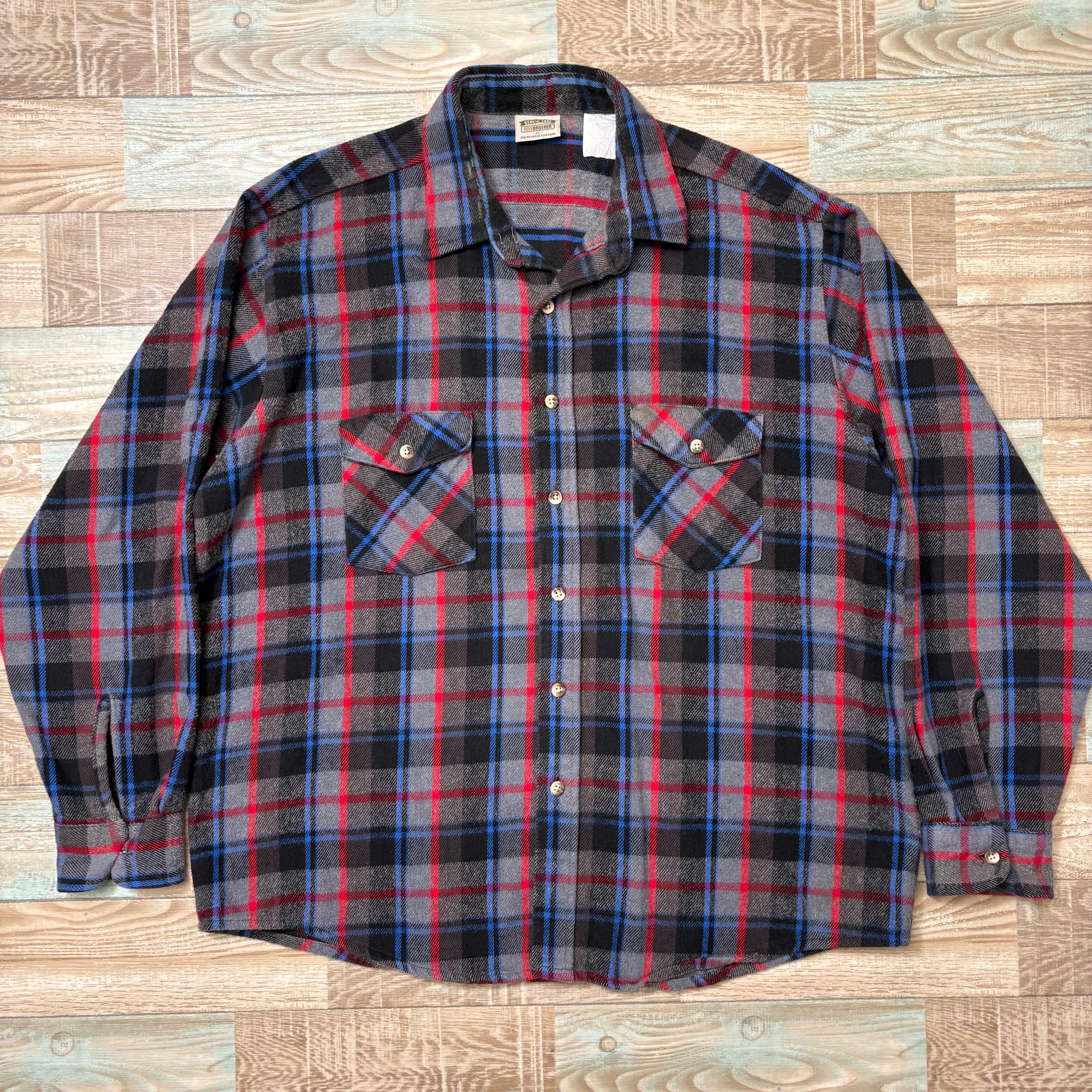 90s FIVEBROTHER ファイブブラザーズ ネルシャツ マルチカラー ブラック グレー レッド ブルー XL