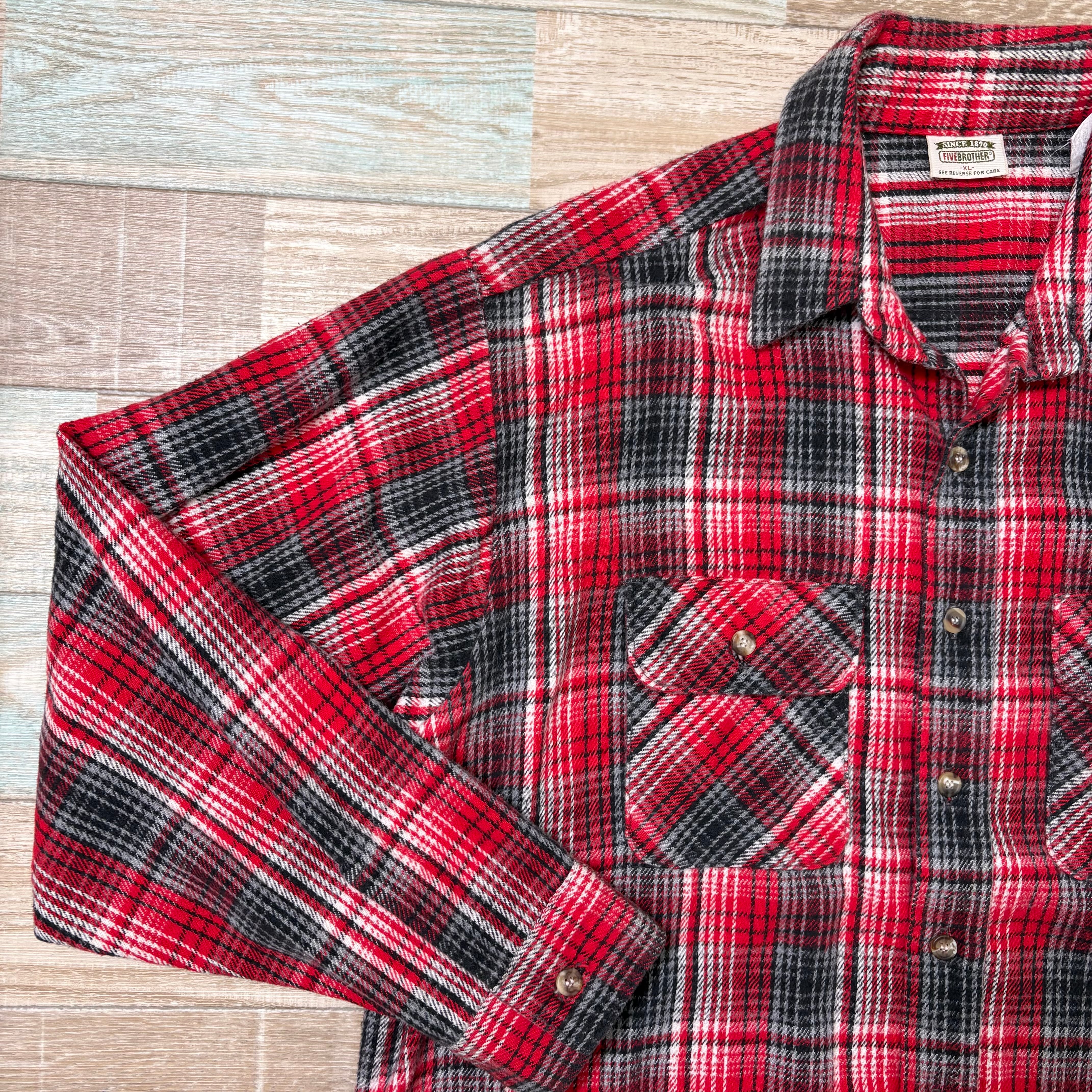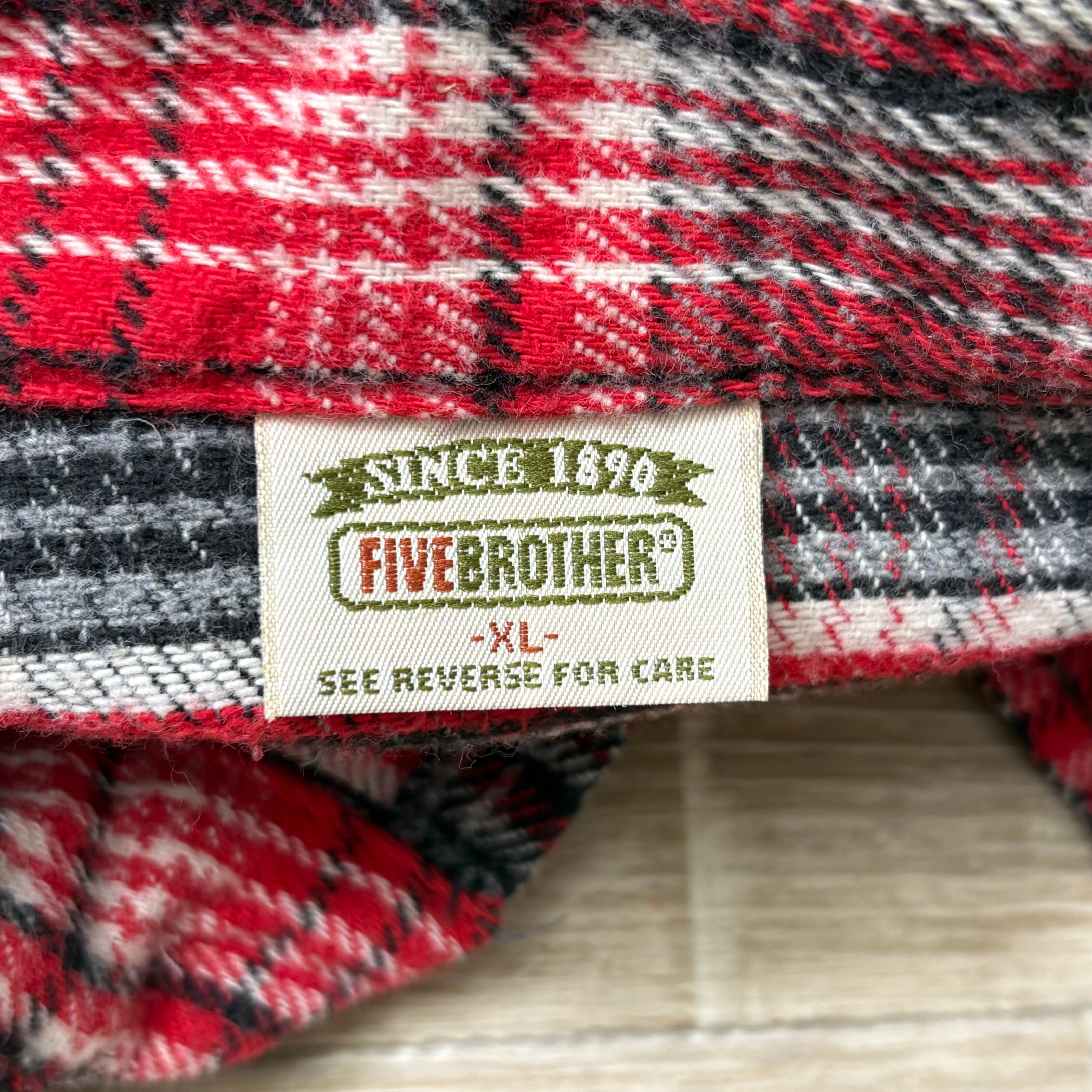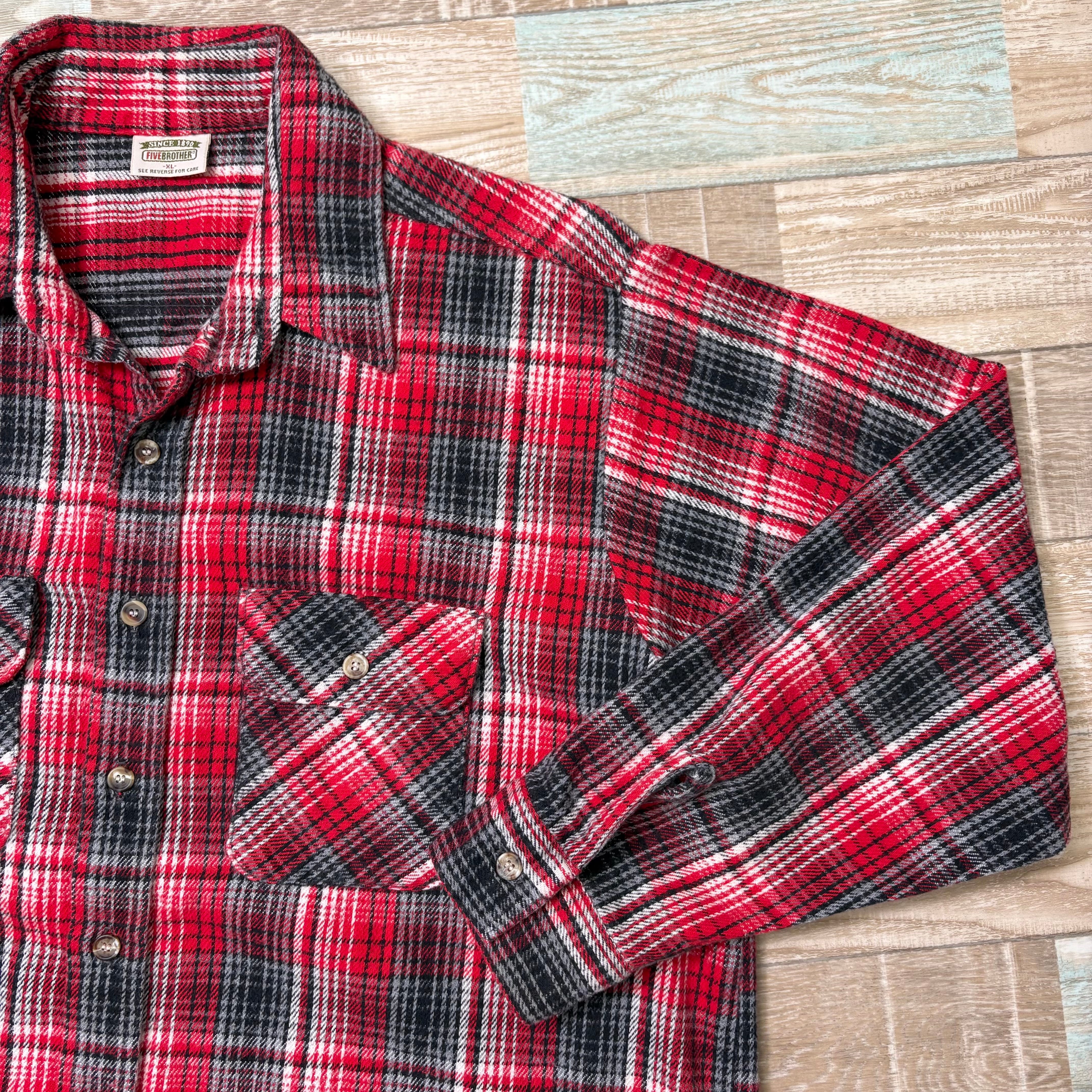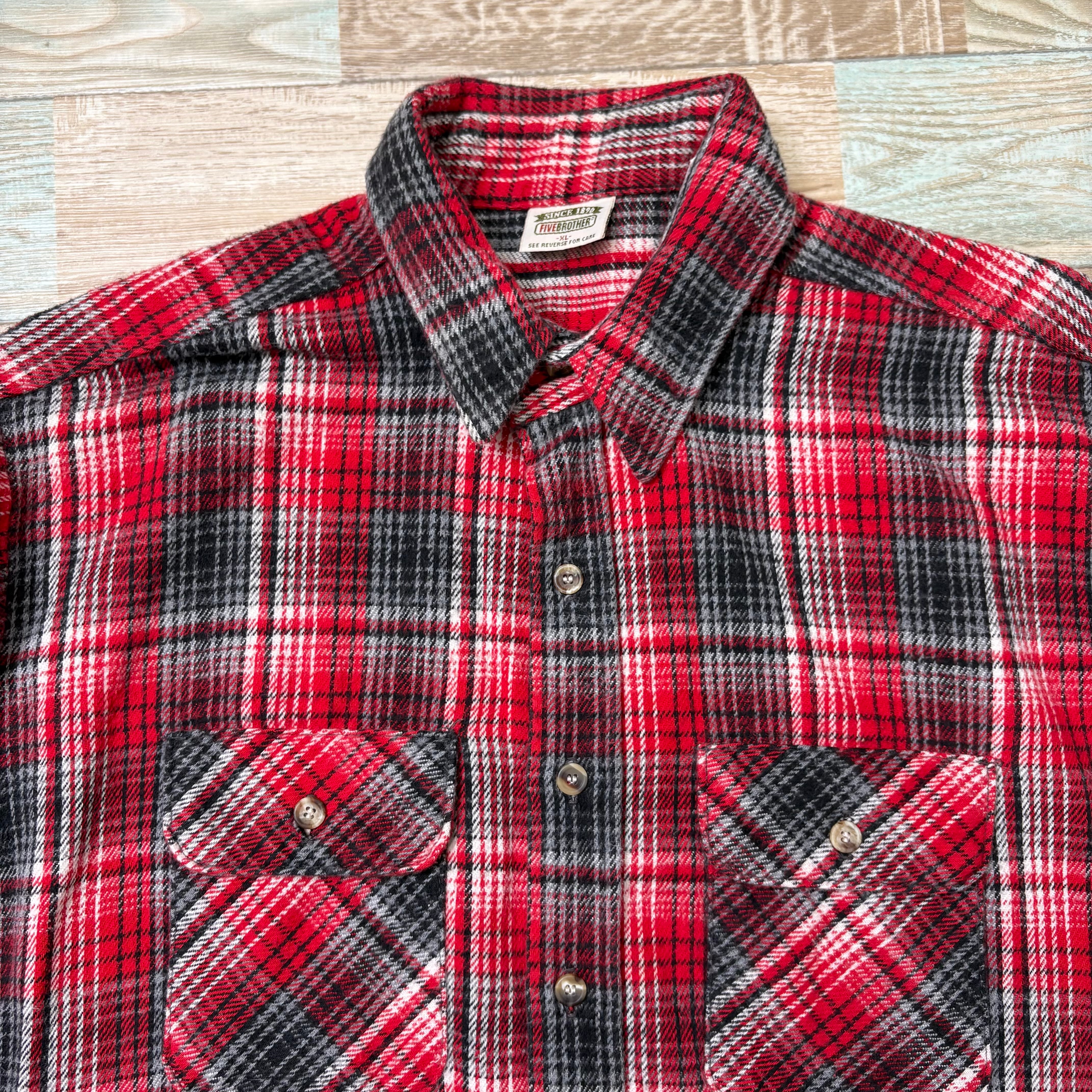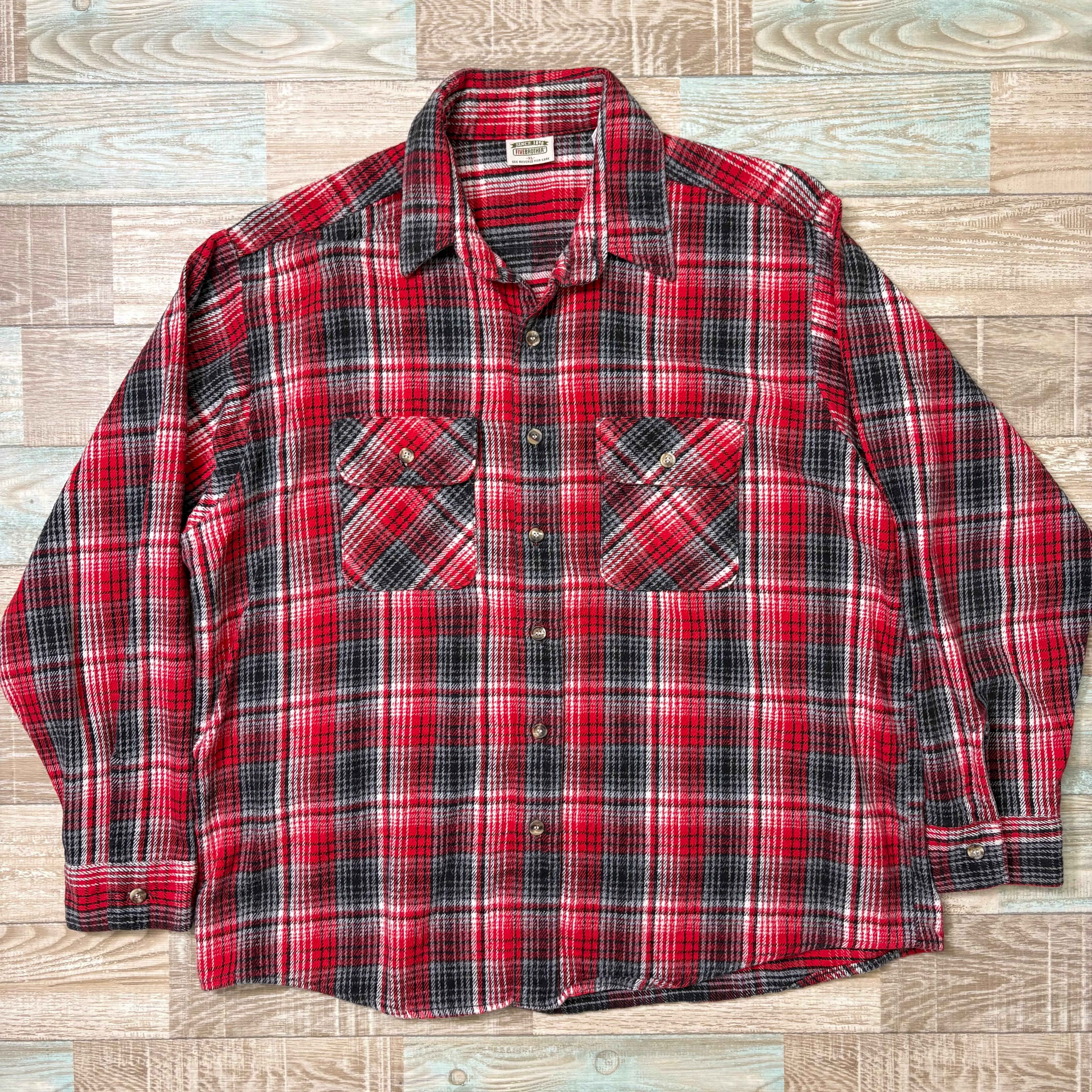 90s FIVEBROTHER ファイブブラザー ネルシャツ 赤 黒 灰 XL