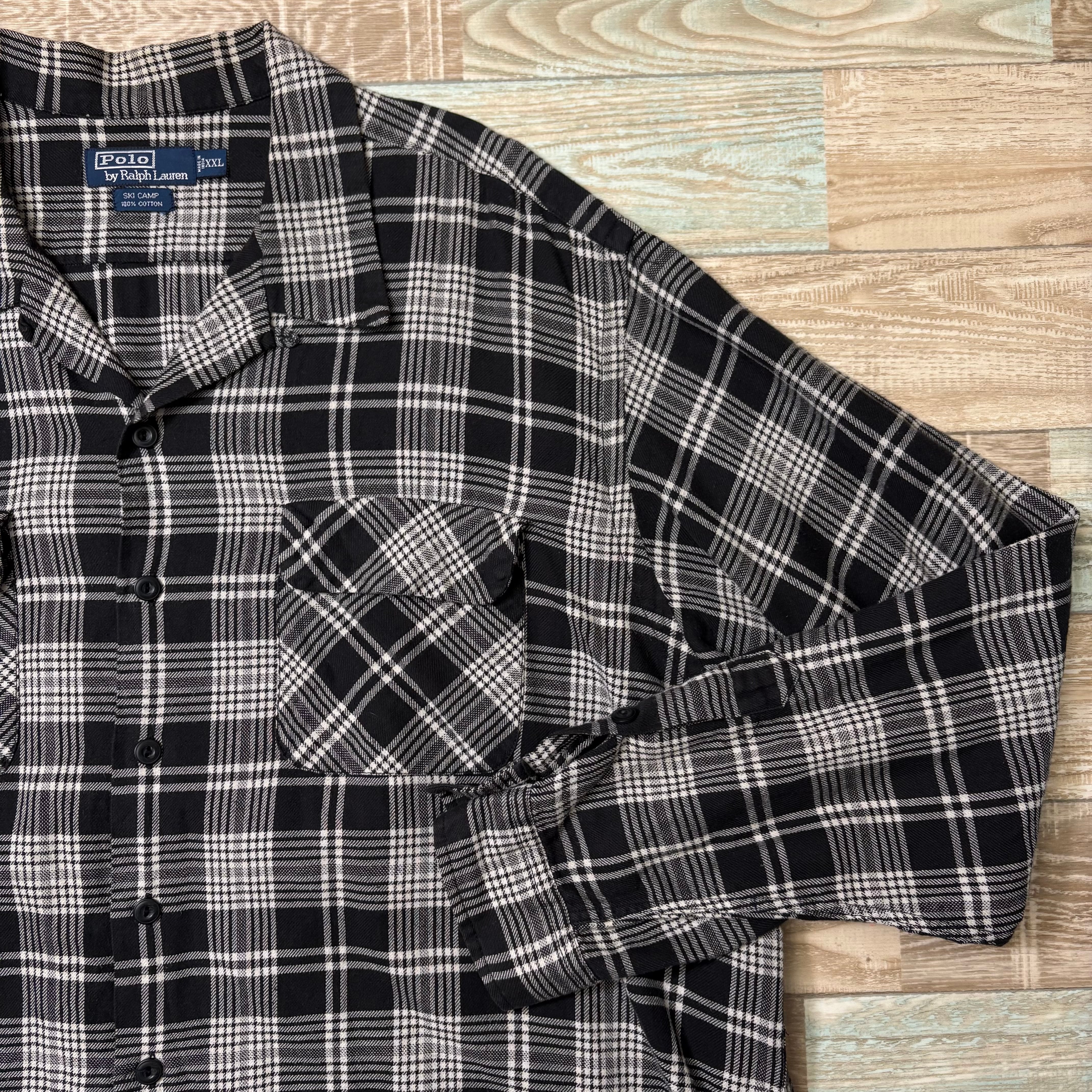 90s Polo by Ralph Lauren ラルフローレン SKI CAMP オープンカラー 開襟 黒 白 XXL