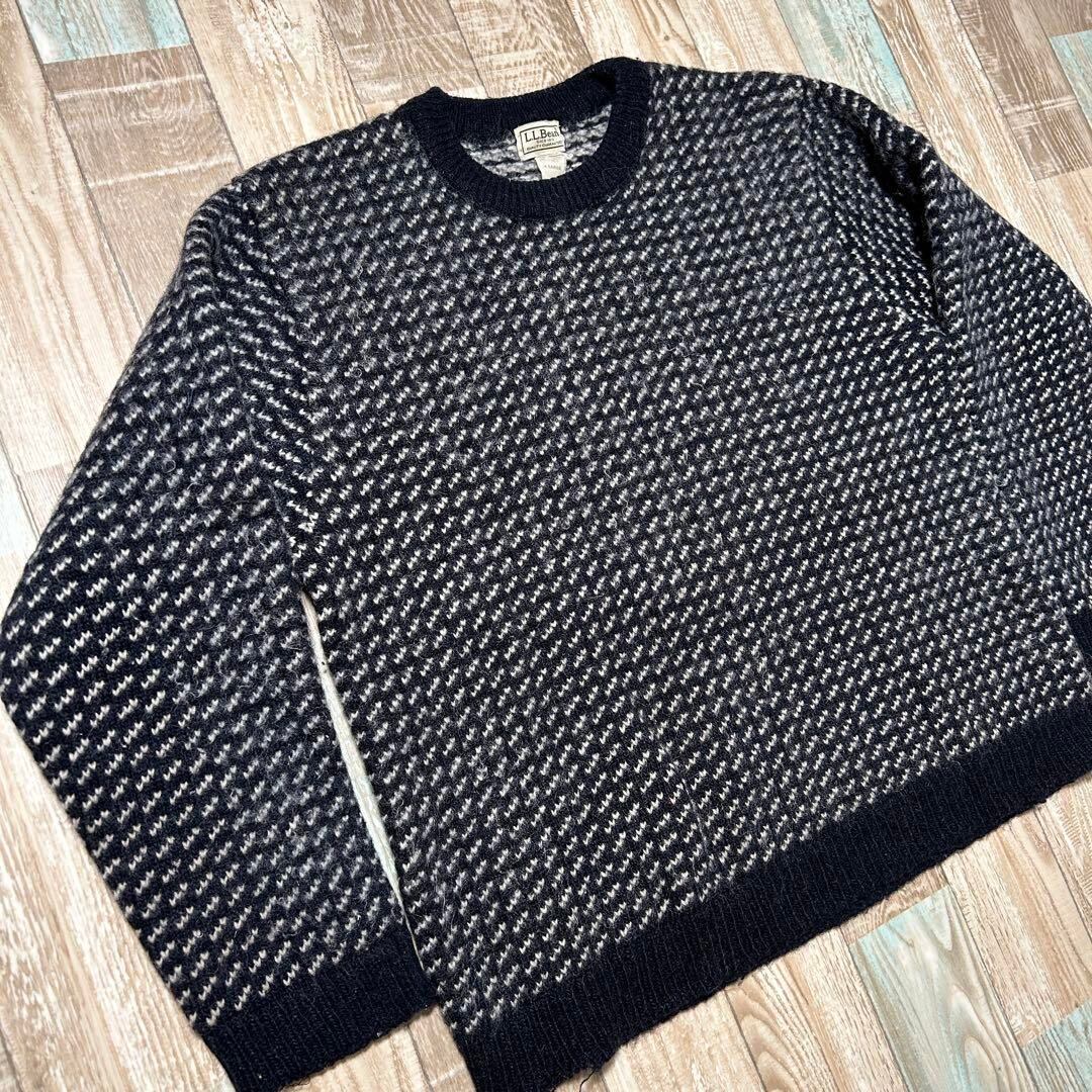 【人気】80s LLBean エルエルビーン バーズアイ ニット ネイビー XL
