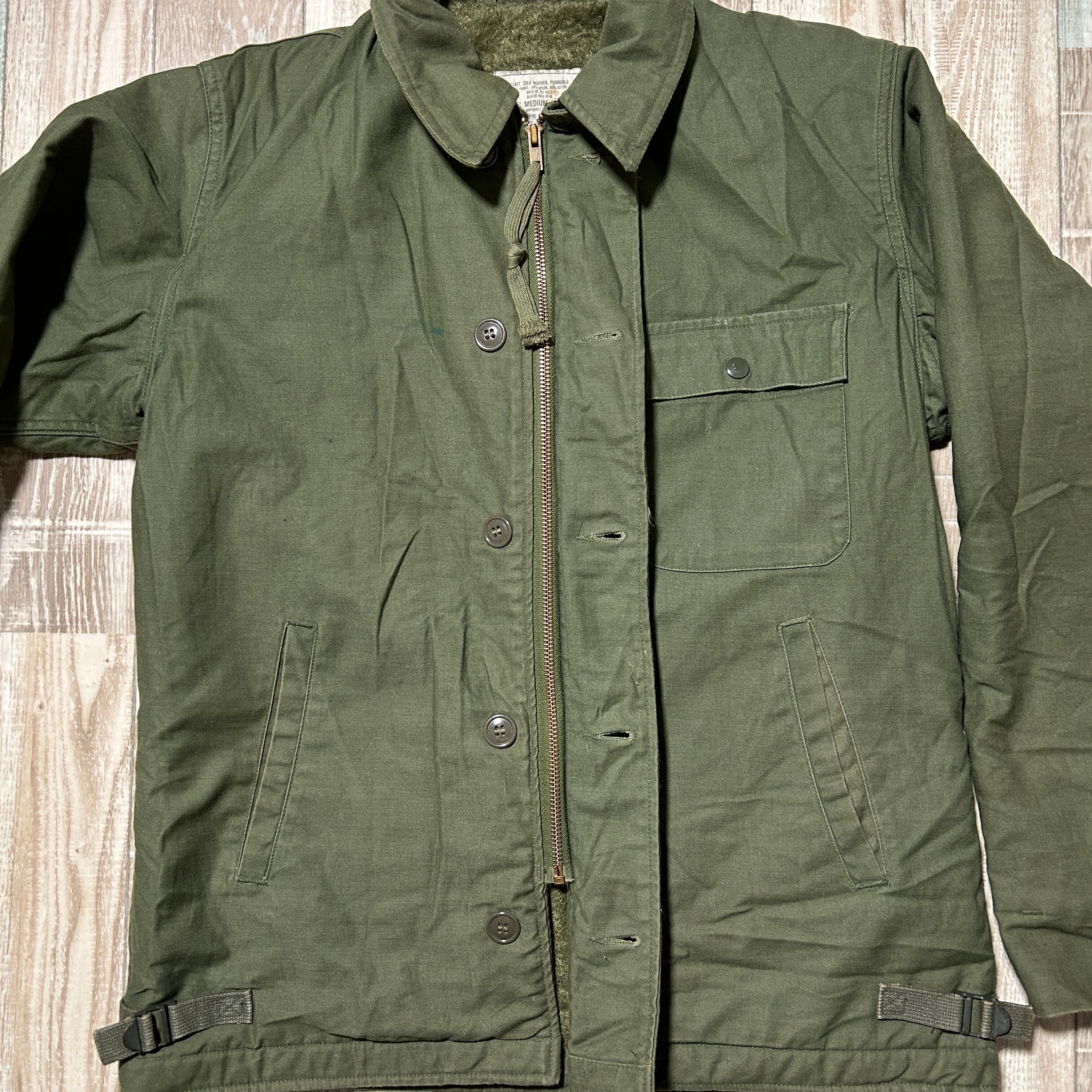 80s 米軍 海軍 US NAVY USN A-2 デッキジャケット ステンシル オリーブグリーン M 実物 オリジナル