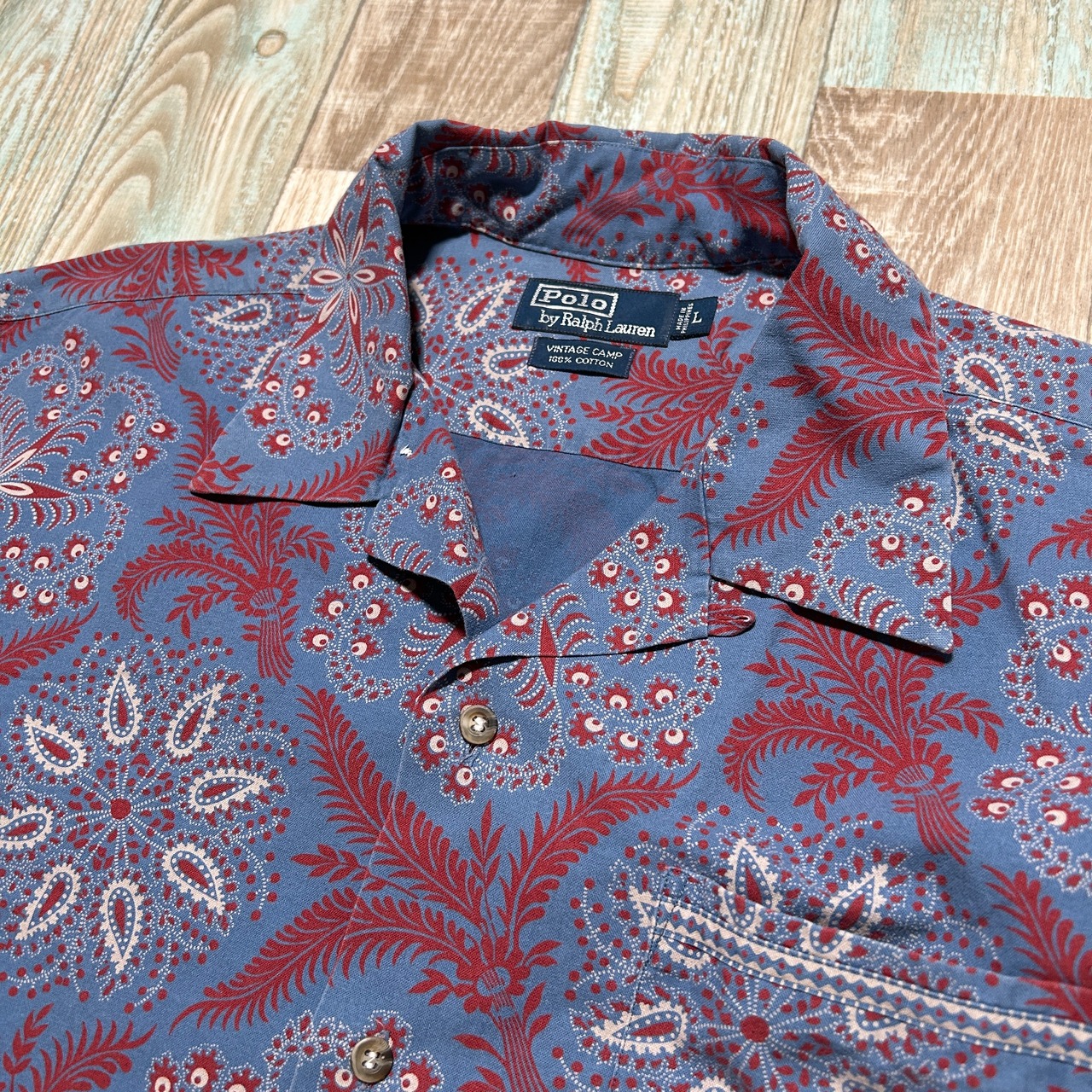 希少 90s Ralph Lauren ラルフローレン VINTAGE CAMP 半袖シャツ 総柄 ペイズリー リーフ L