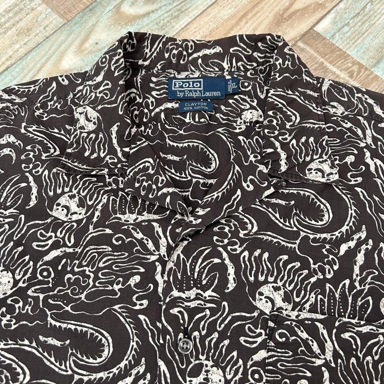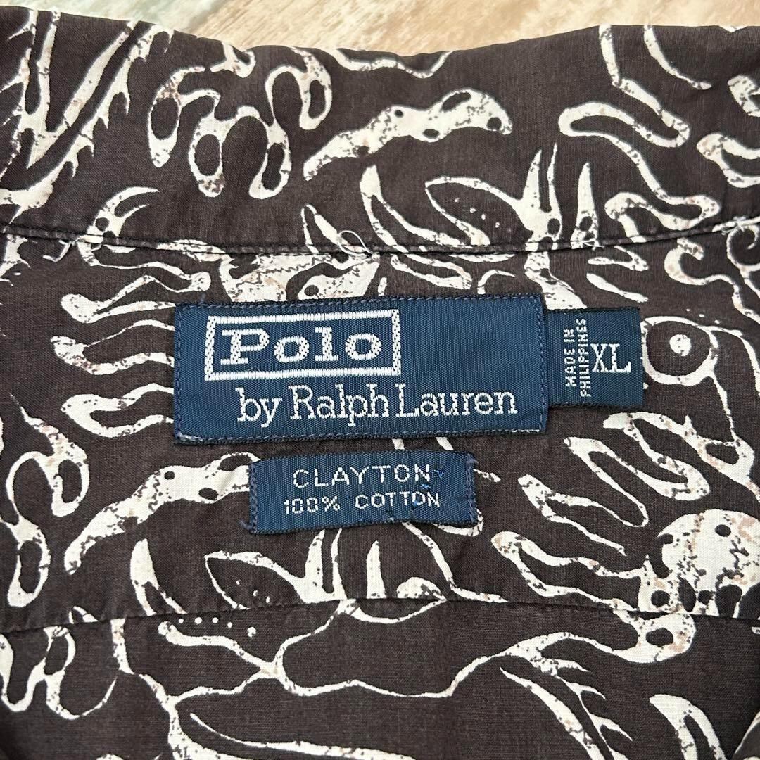 90s ラルフローレン CLAYTON 半袖シャツ 総柄 渦巻き XL