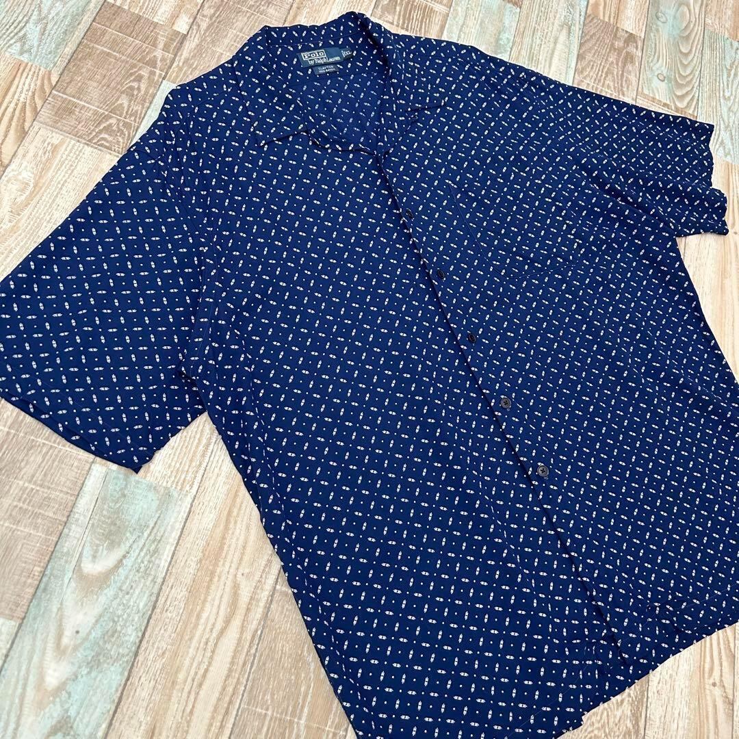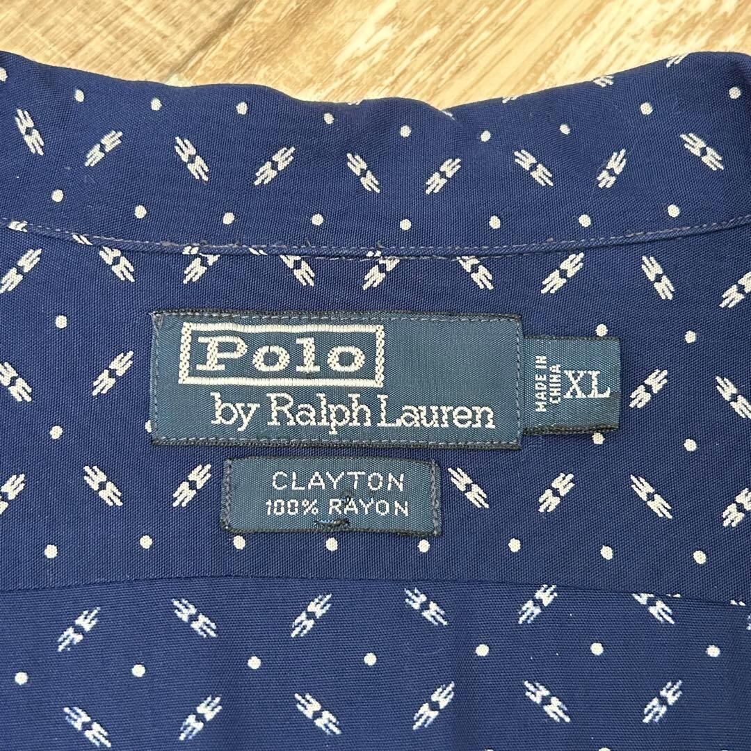 90s ラルフローレン CLAYTON 半袖シャツ レーヨン100% 総柄 XL