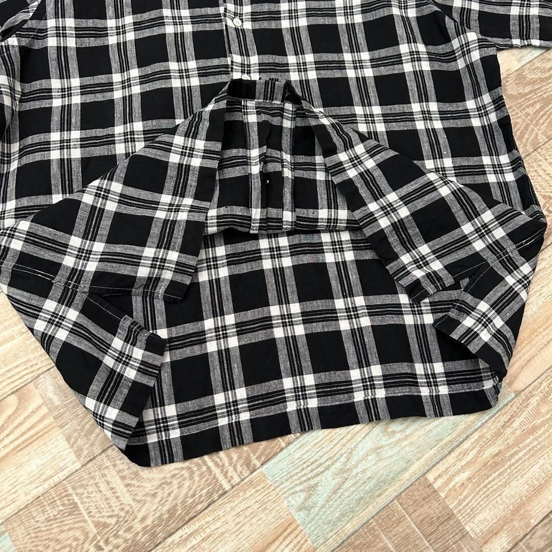 90s ラルフローレン CLAYTON 半袖シャツ 白黒チェック リネン 開襟