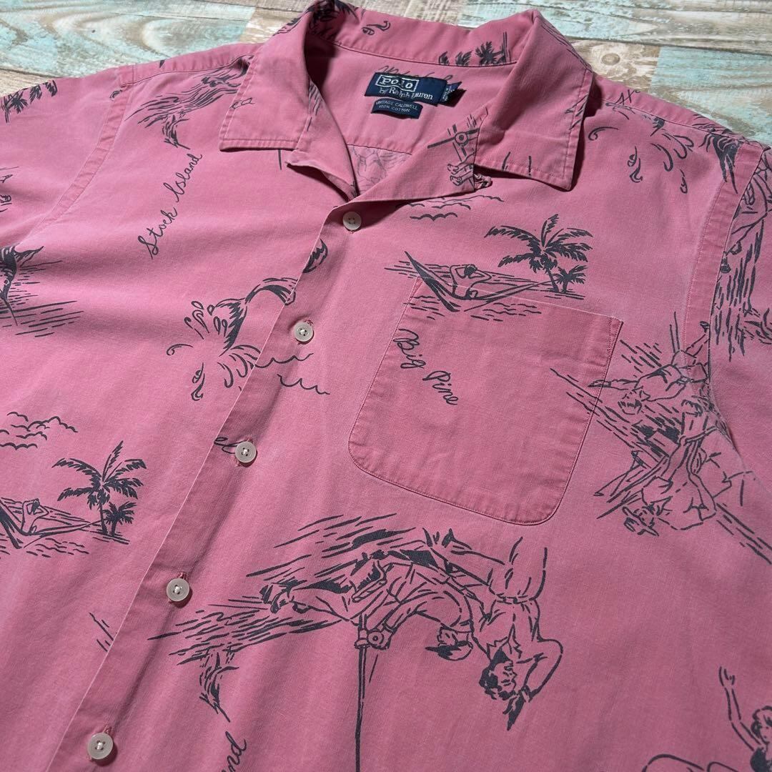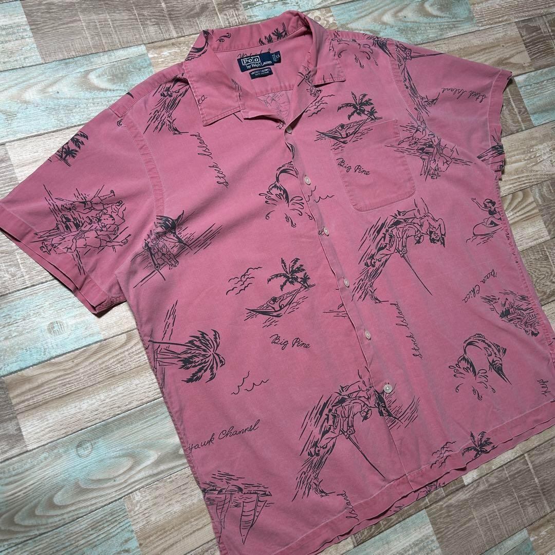 希少 90s VINTAGE CALDWELL ラルフローレン オープンカラー ピンク XL 海 カジキ ヤシの木 釣り