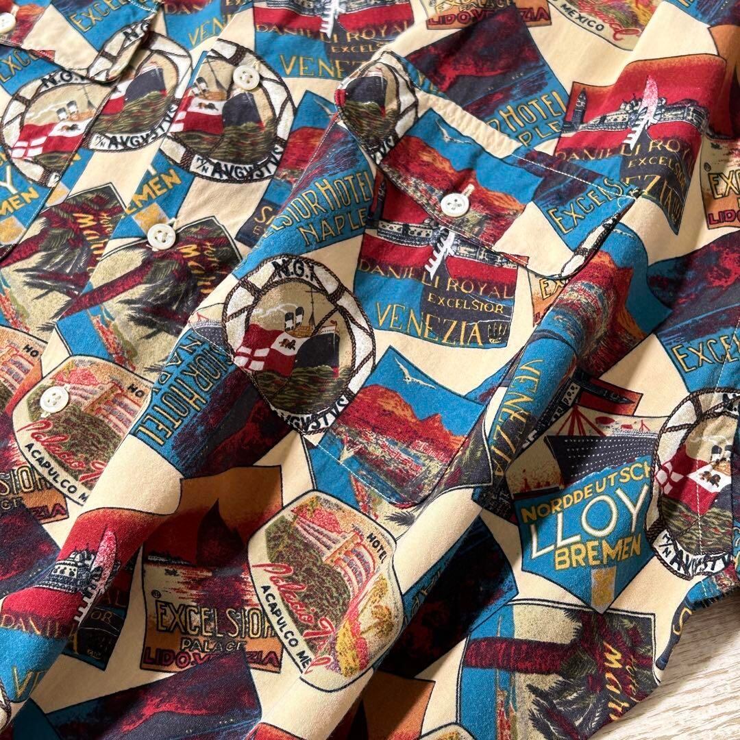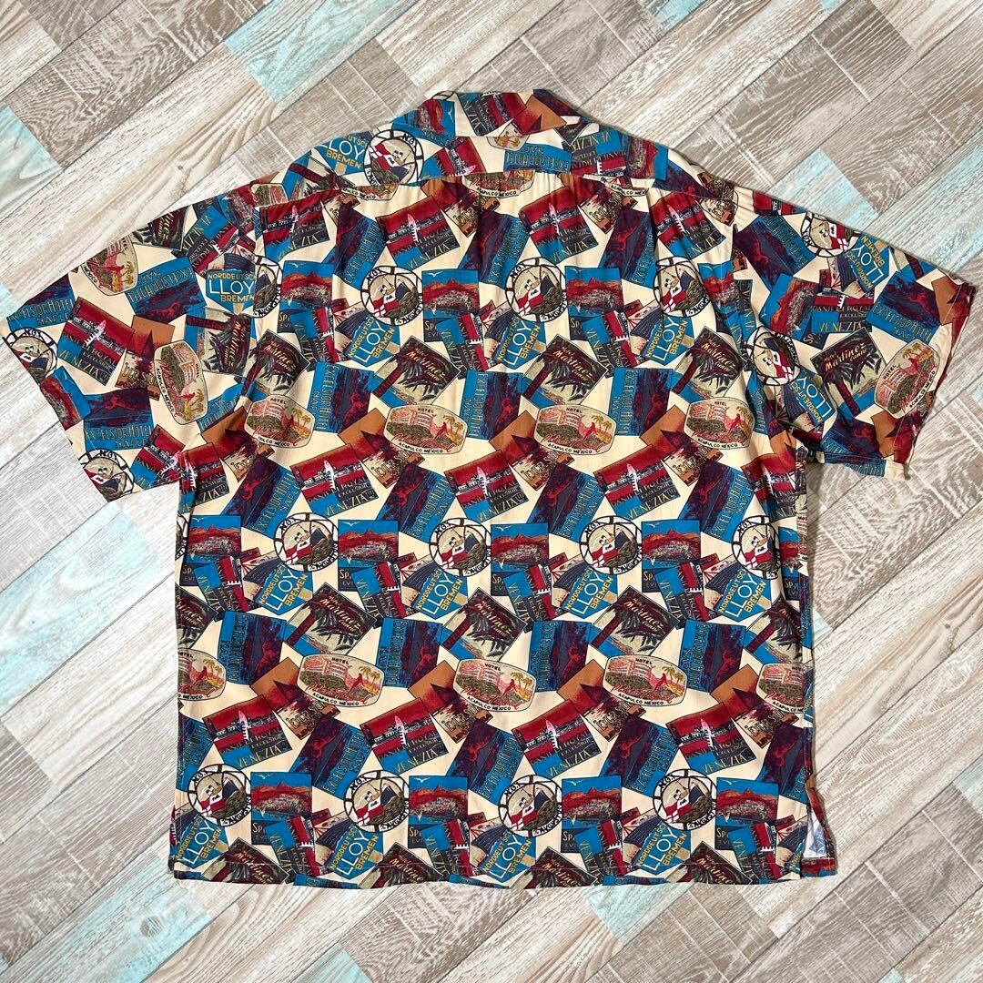 90s ラルフローレン アロハシャツ オープンカラー 半袖シャツ 総柄 レーヨン XL