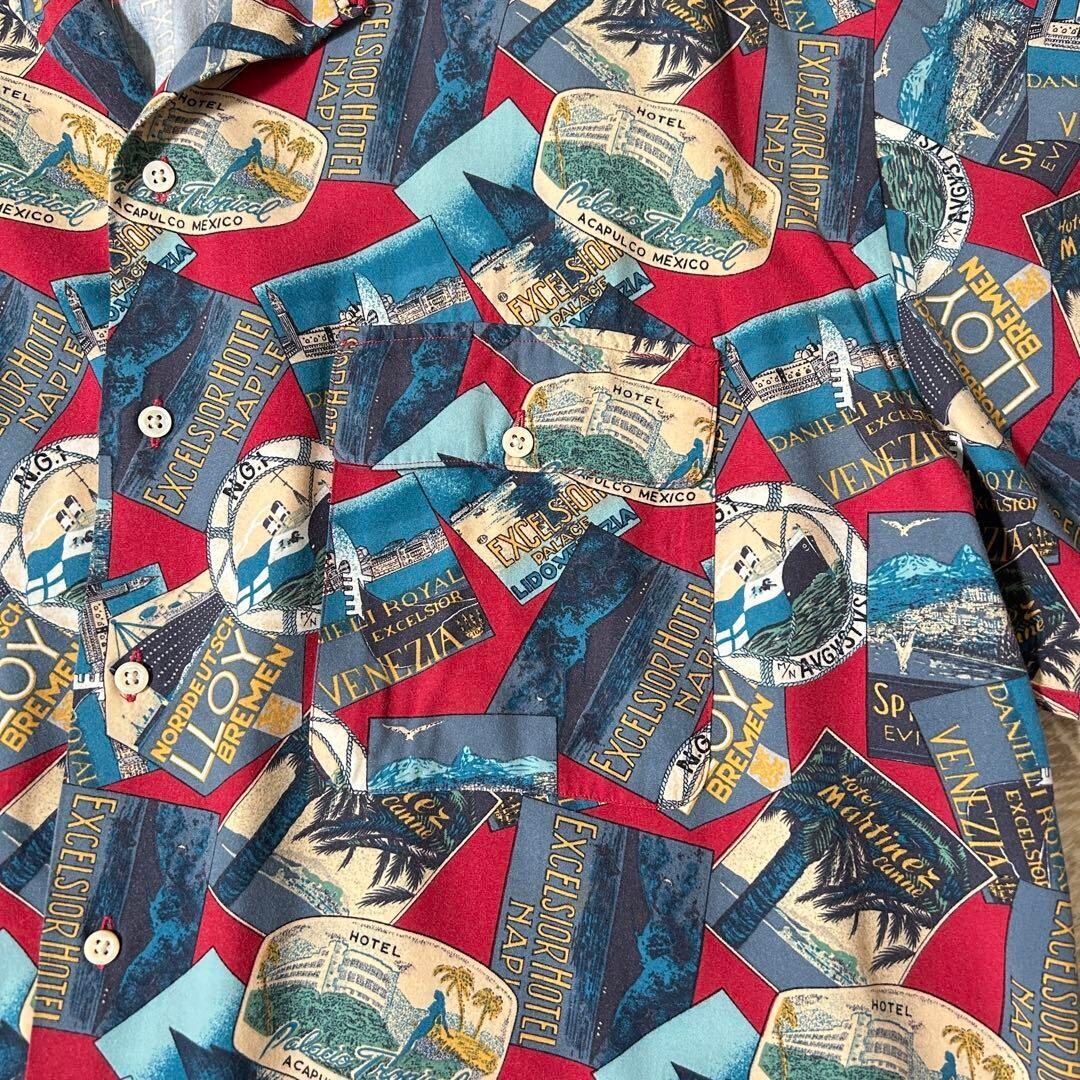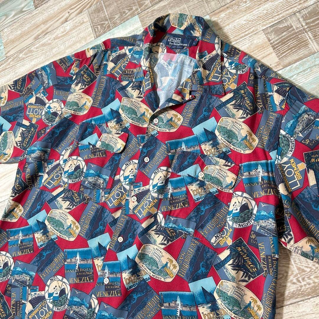 90s ラルフローレン アロハシャツ オープンカラー 半袖シャツ 総柄 レーヨン L