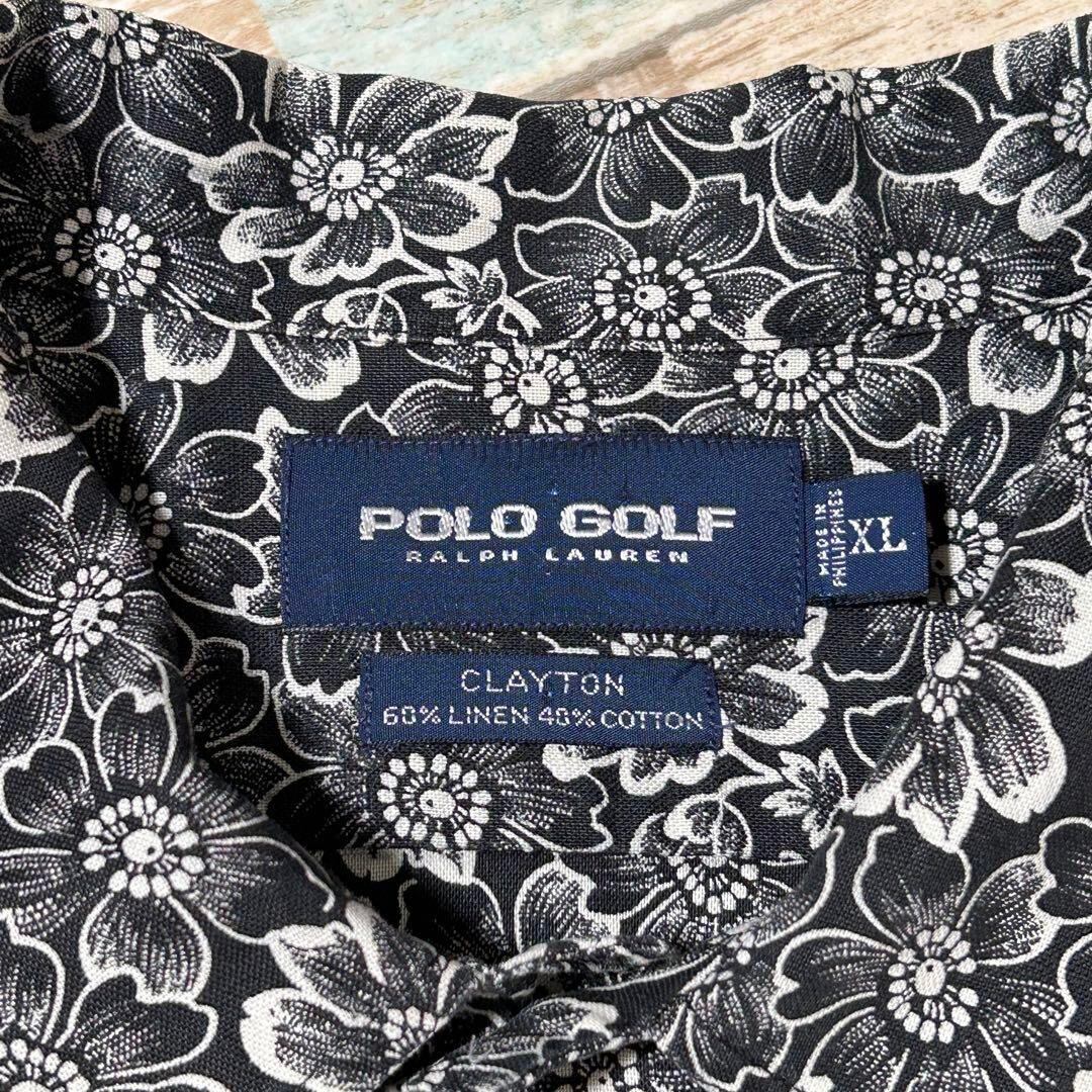 90s ポロゴルフ ラルフローレン CLAYTON 花柄 大きめ オープンカラー 黒 XL