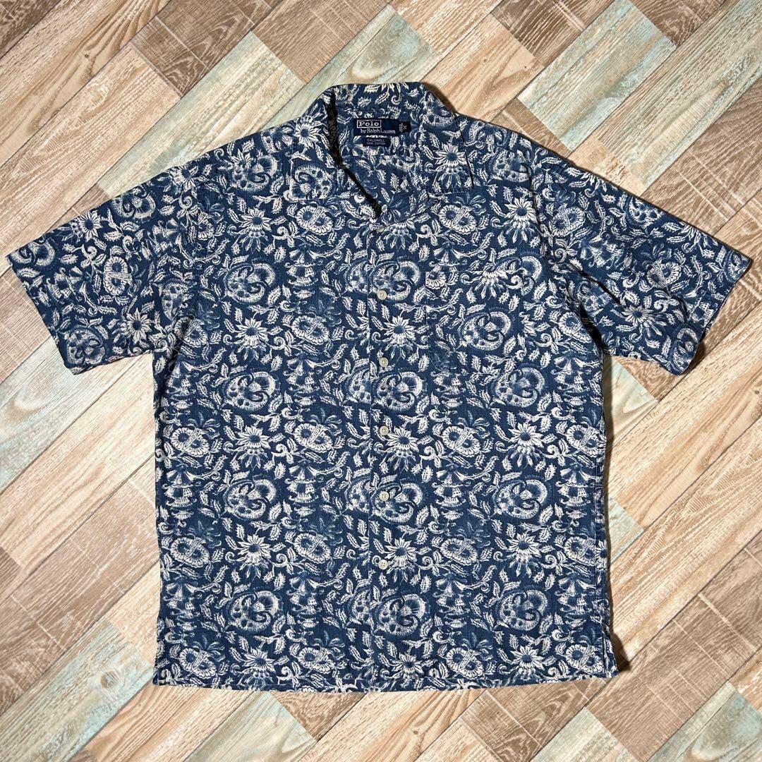 90s ラルフローレン CALDWELL ボタニカル 花柄 オープンカラー M