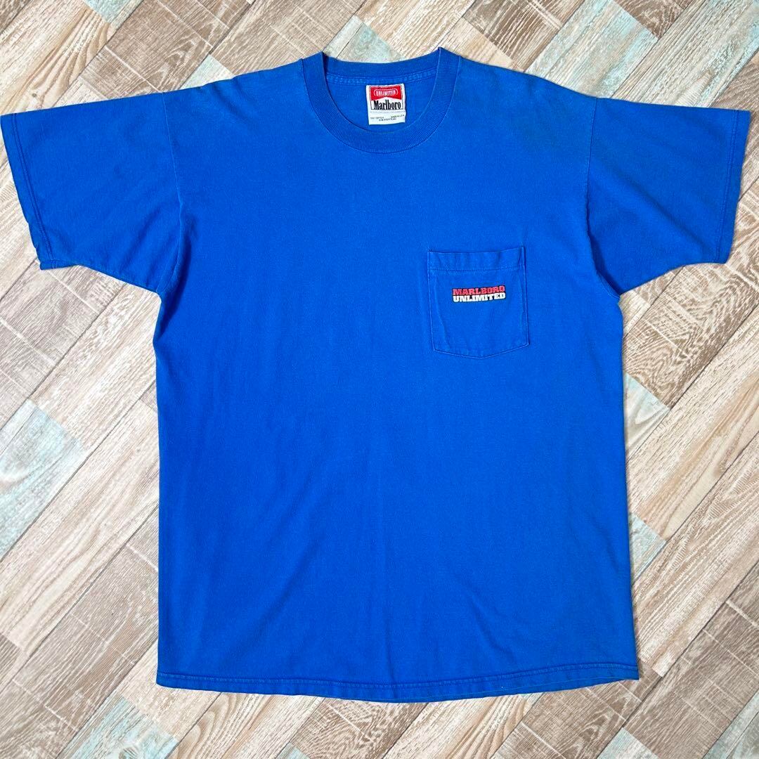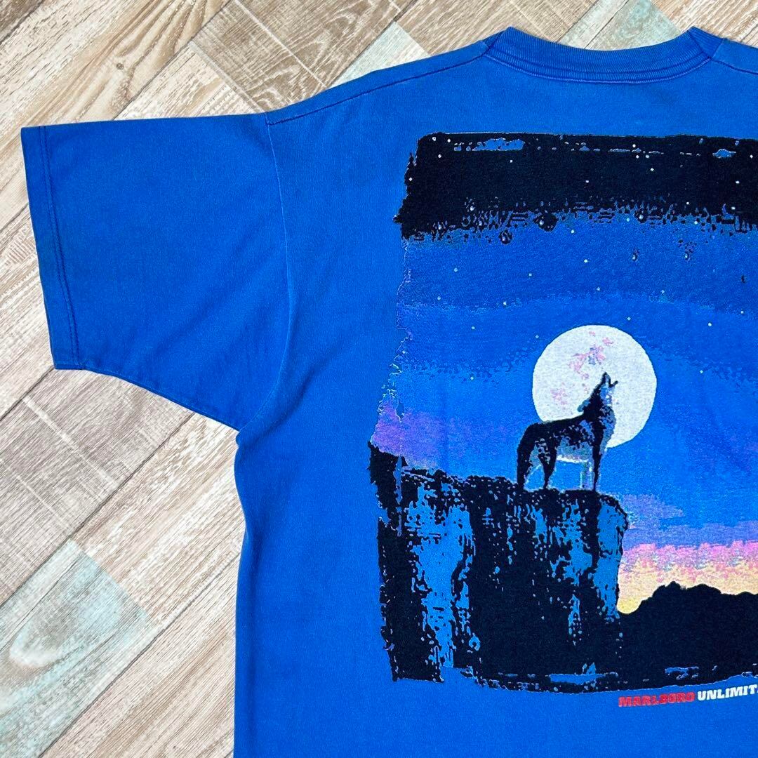 USA製 Marlboro マールボロ マルボロ Tシャツ ウルフ ポケT 青 XL相当