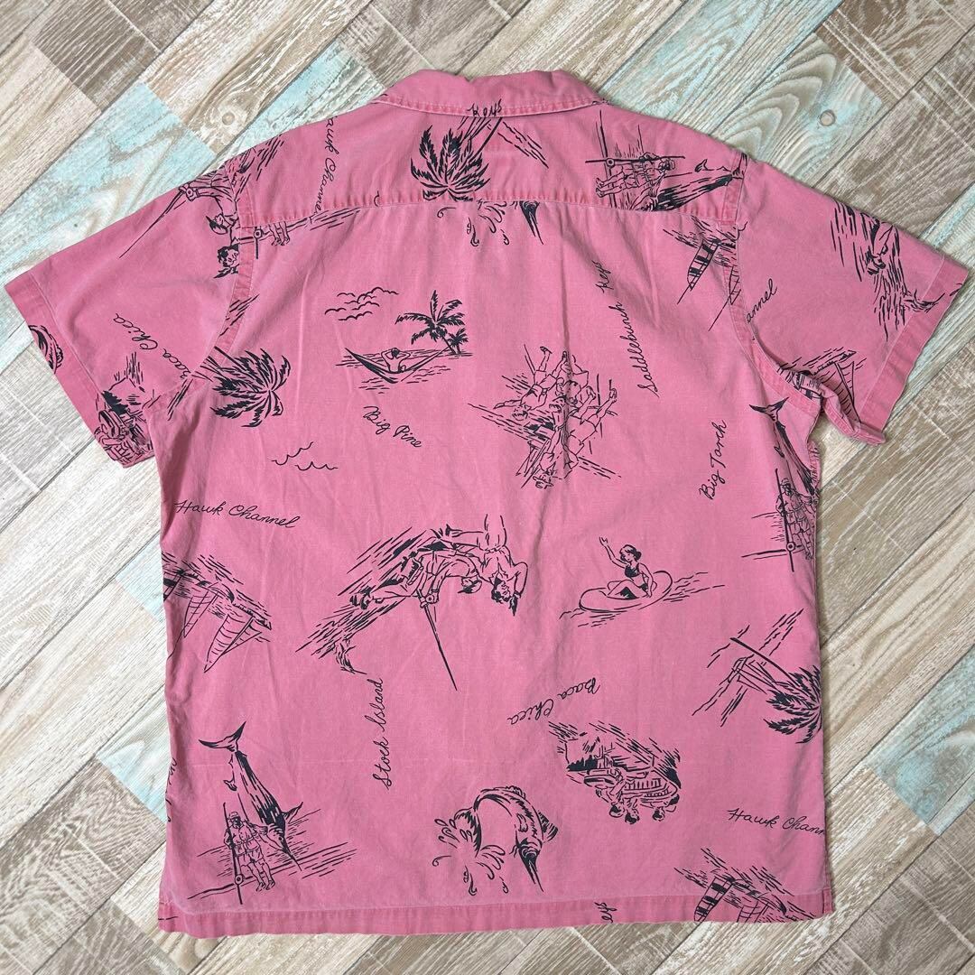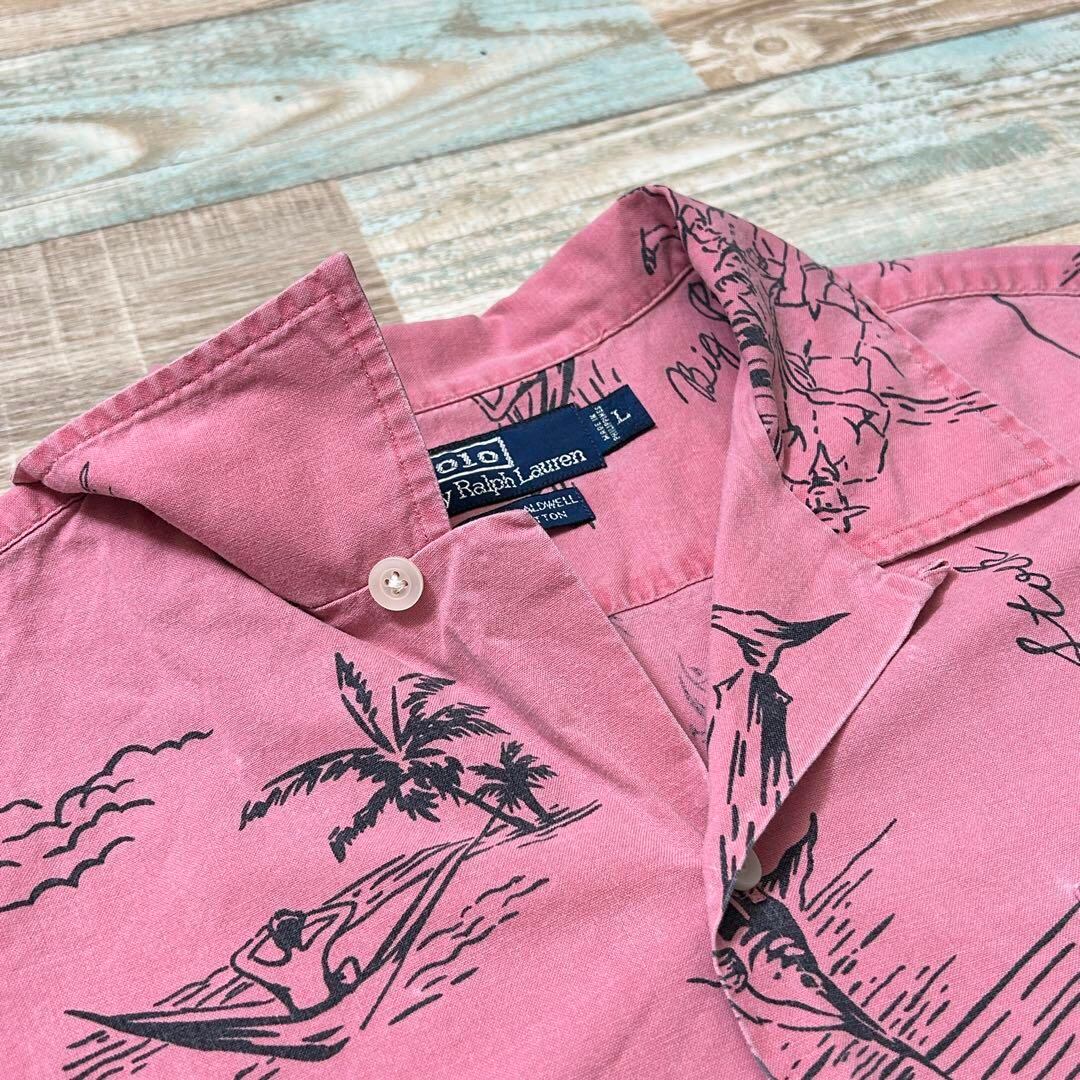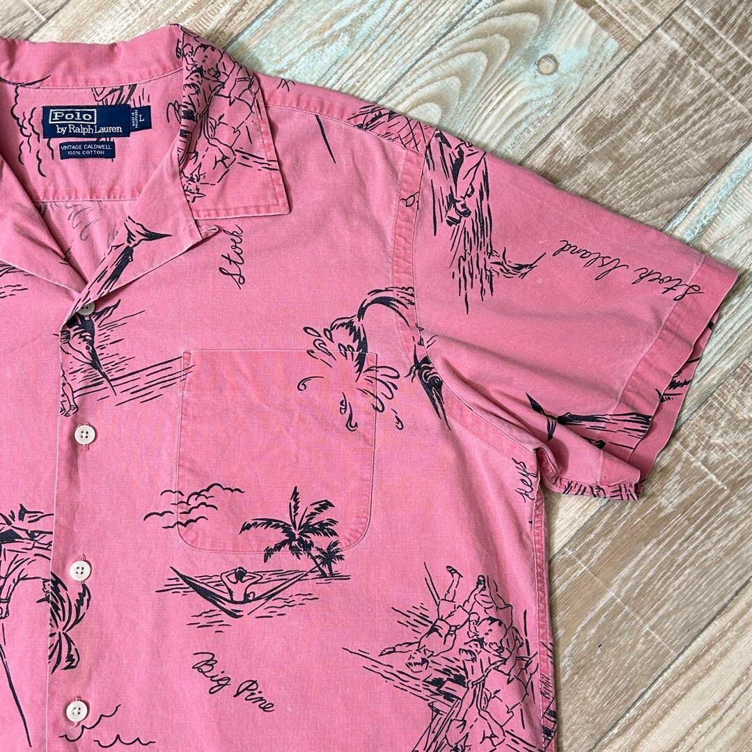 希少 90s Polo by Ralph Lauren ポロ バイ ラルフローレン VINTAGE CALDWELL カジキ 柄シャツ アロハシャツ 総柄 オープンカラー 開襟 L ピンク