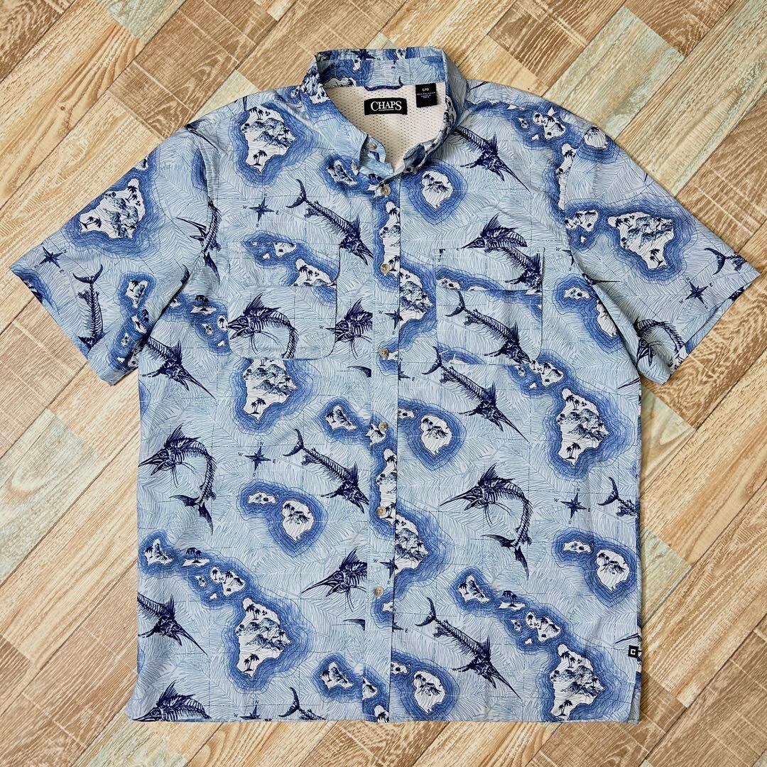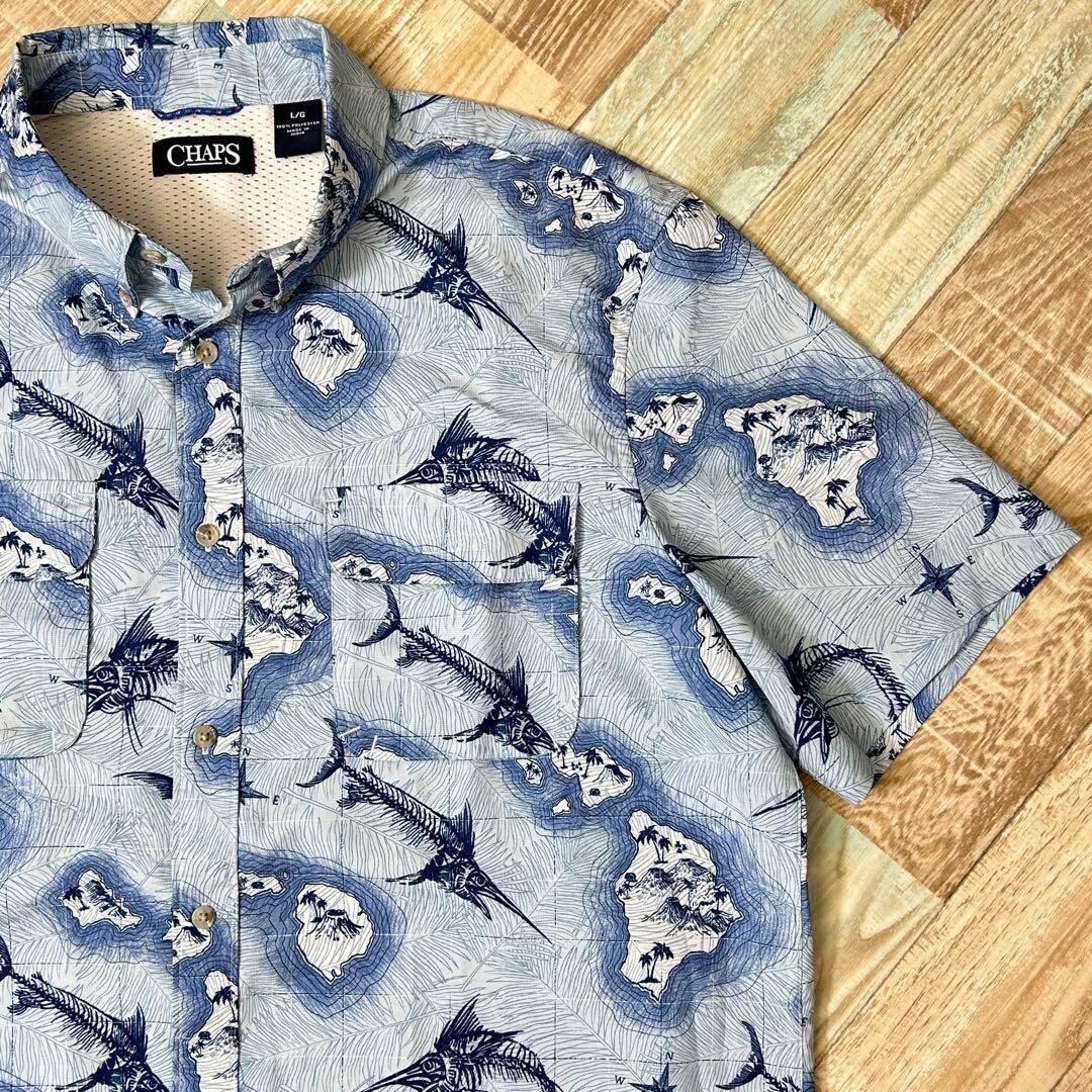 CHAPS チャップス 柄シャツ 総柄 カジキ 骨 ボーン ポリシャツ ボタンダウン BD L (Ralph Lauren/ラルフローレン)