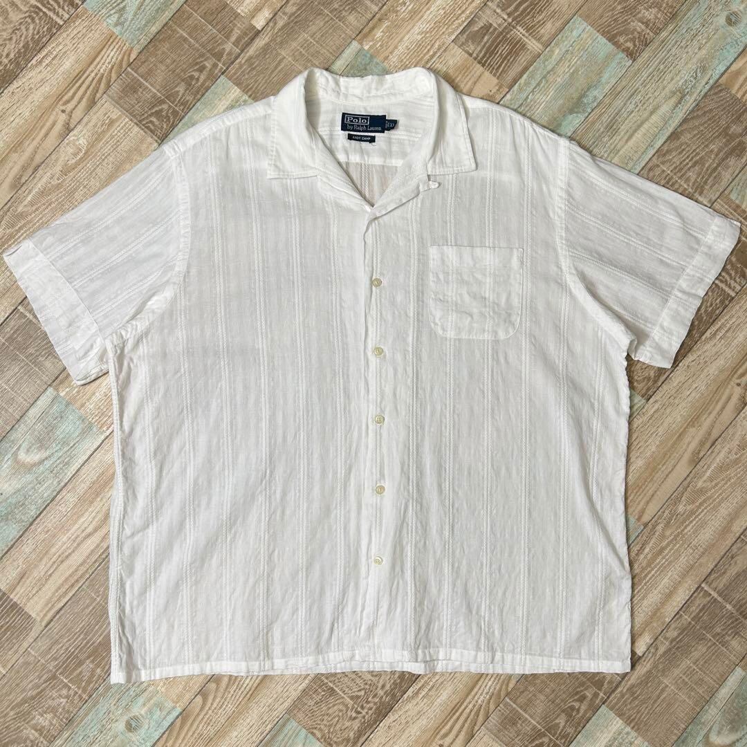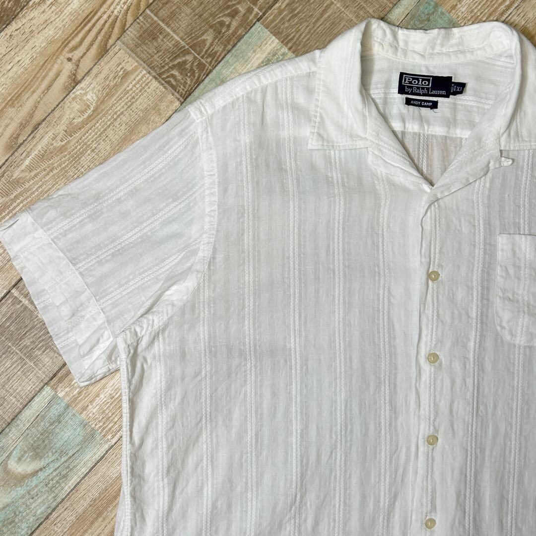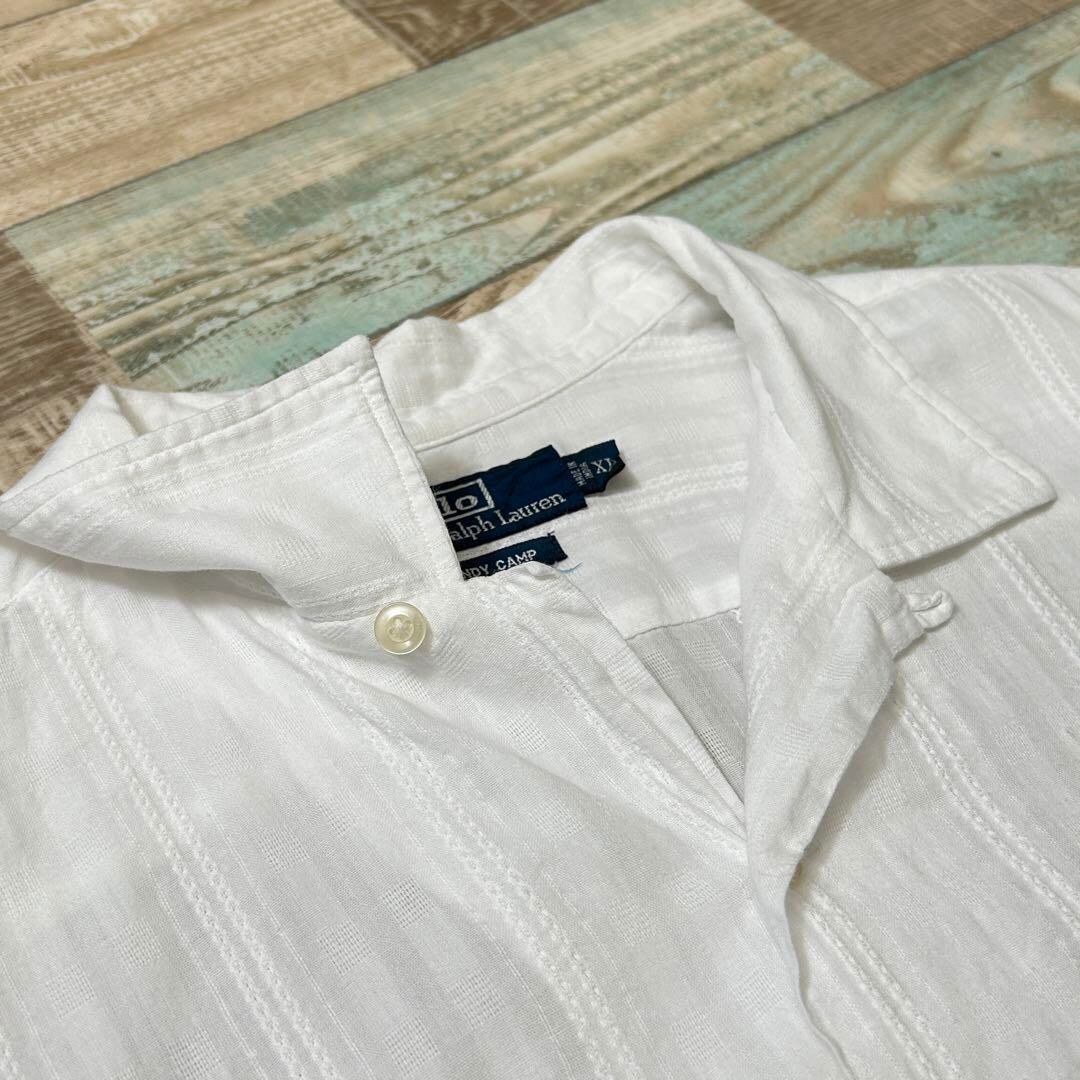 希少デザイン 90s Polo by Ralph Lauren ポロ バイ ラルフローレン ANDY CAMP アラン オープンカラー 開襟 XL 白 ホワイト