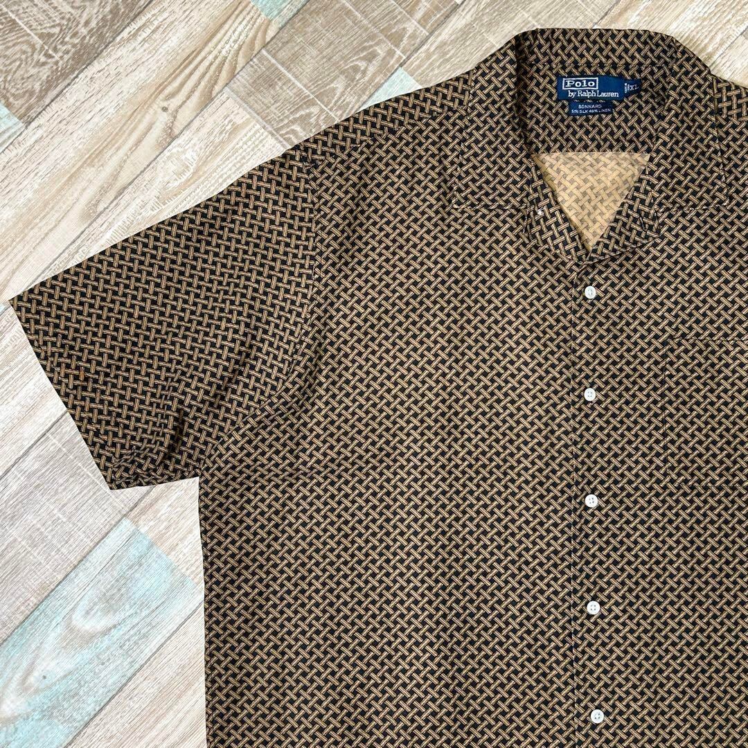 レア 90s Polo by Ralph Lauren ポロ バイ ラルフローレン BONNARD 総柄 柄シャツ 開襟 オープンカラー メッシュ 網 XL