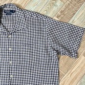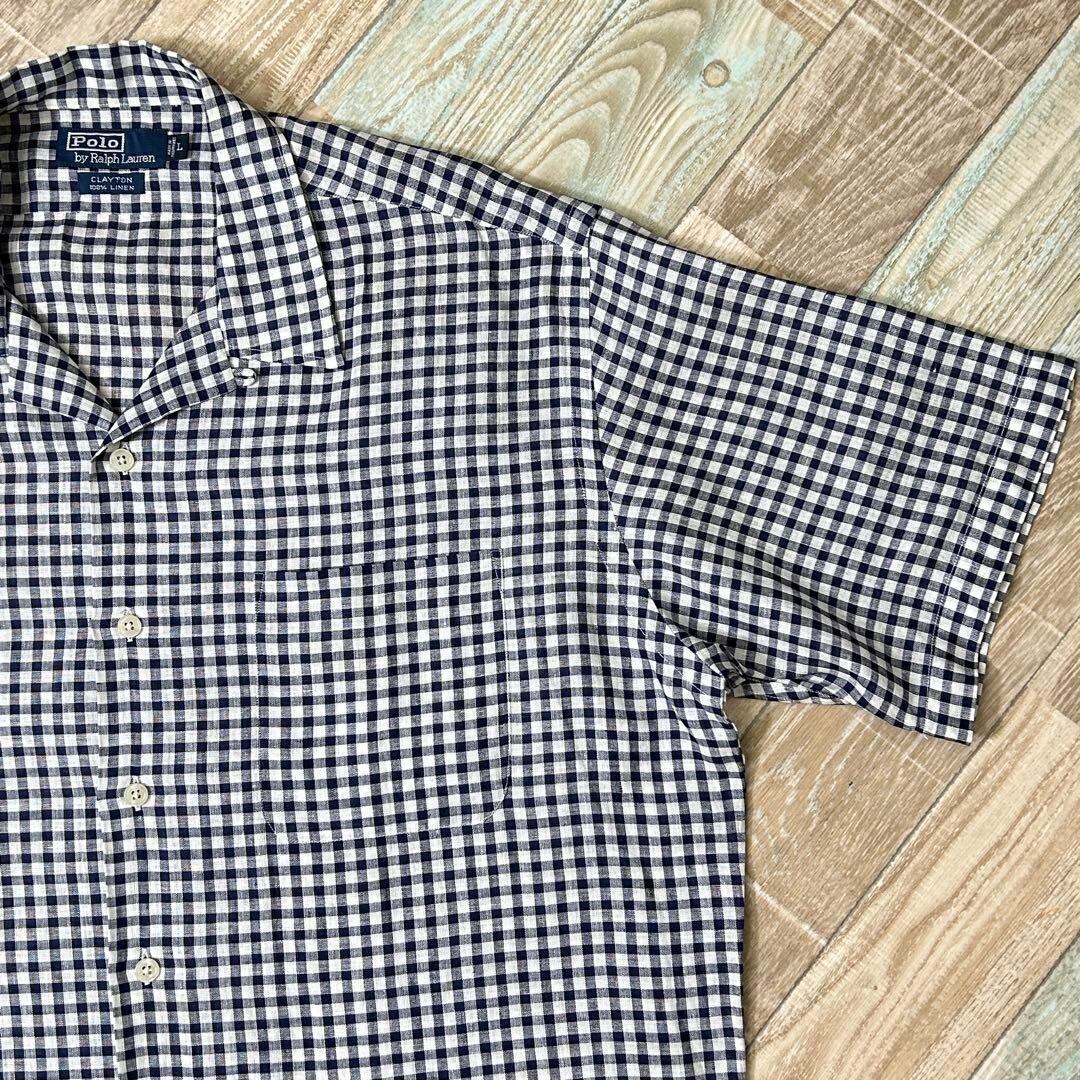 90s Polo by Ralph Lauren ポロ バイ ラルフローレン CLAYTON ギンガムチェック オープンカラー 開襟 リネン ネイビー L