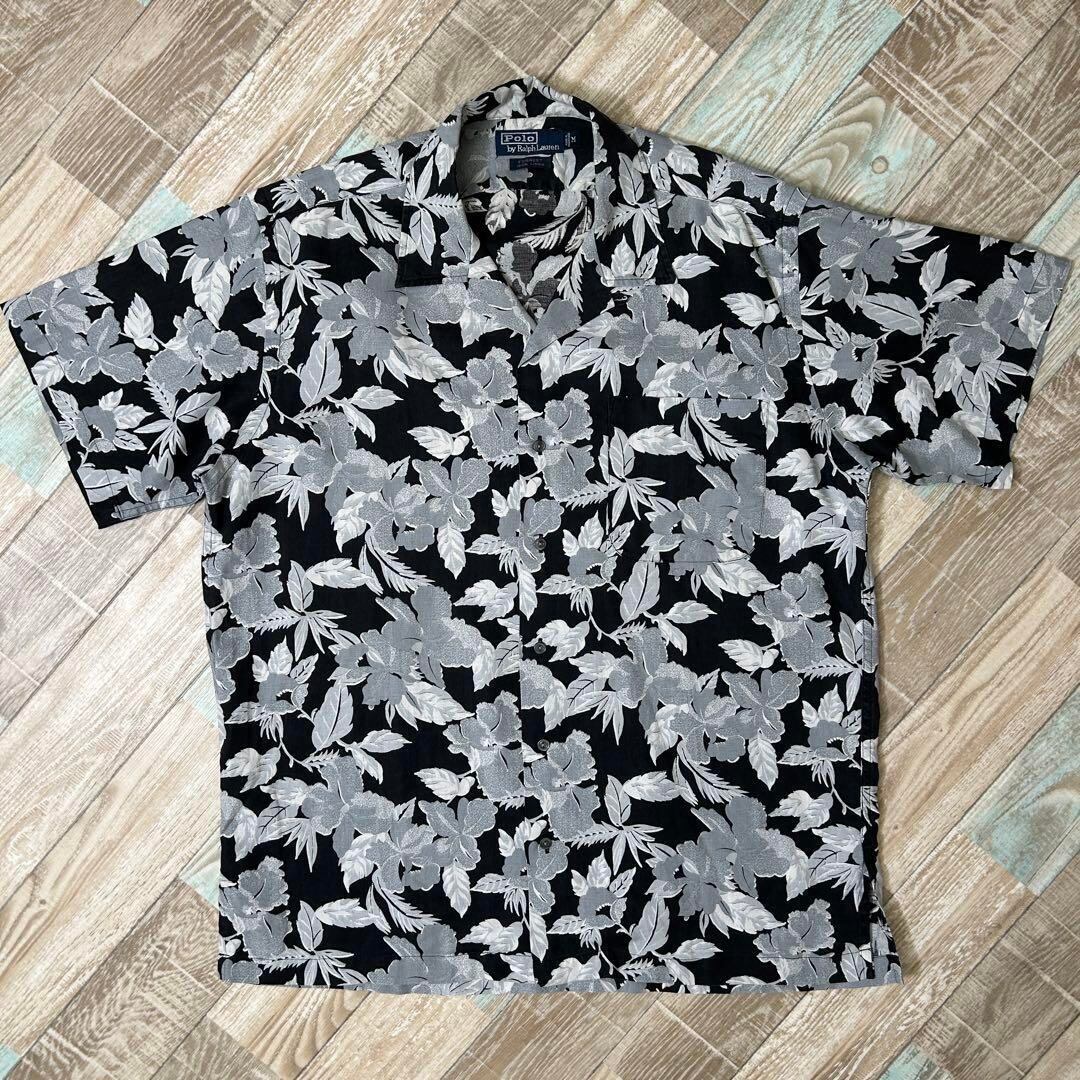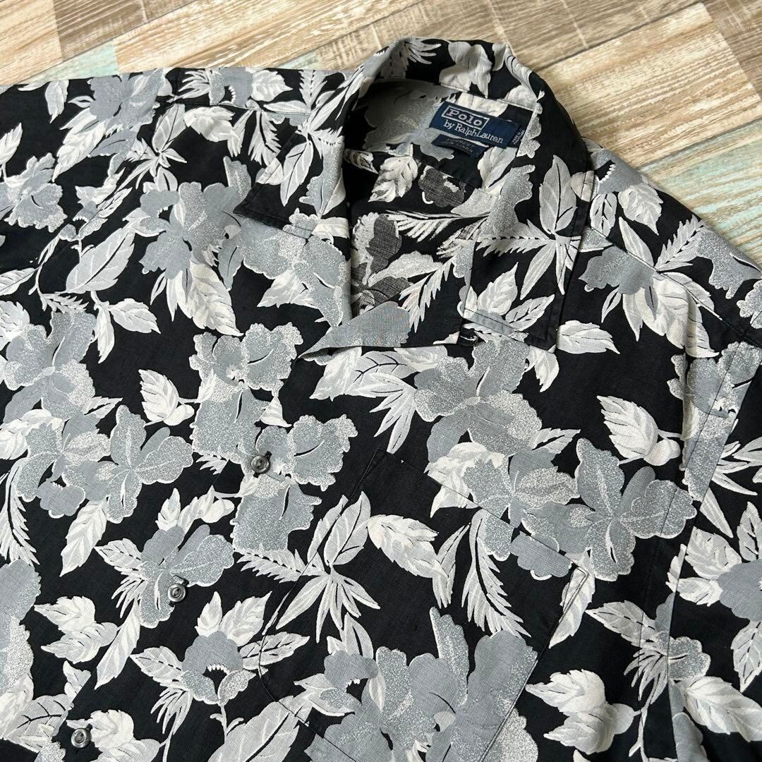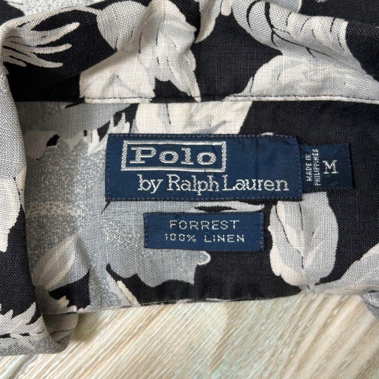 超レア 90s Polo by Ralph Lauren ポロ バイ ラルフローレン FORREST 総柄 柄シャツ 開襟 オープンカラー リネン100% M