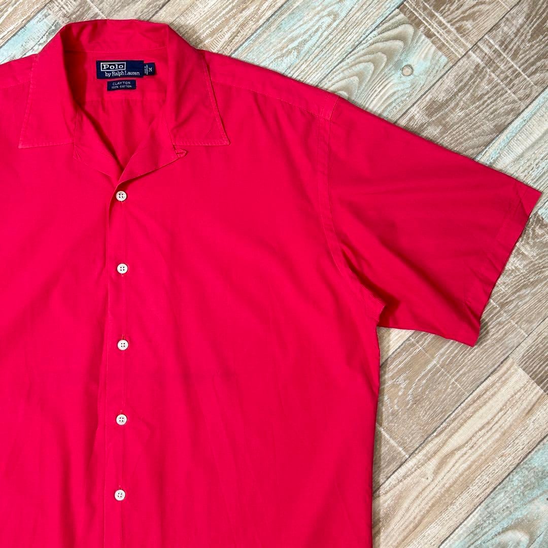 90s Polo by Ralph Lauren ポロ バイ ラルフローレン CLAYTON 半袖 完全無地 オープンカラー 開襟 赤 M