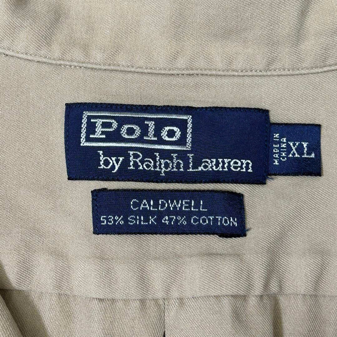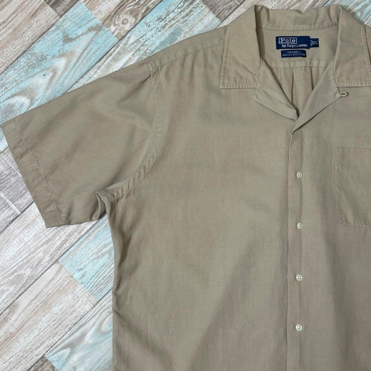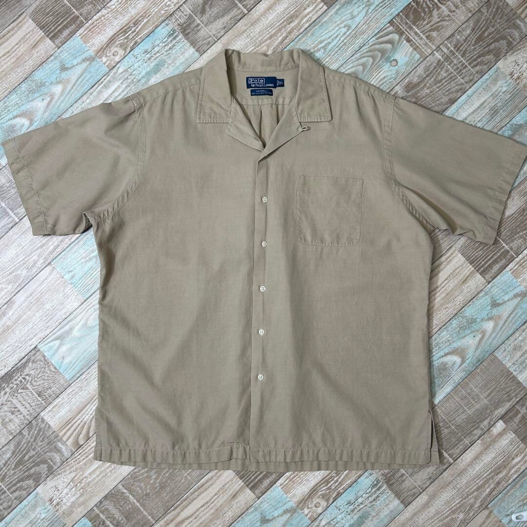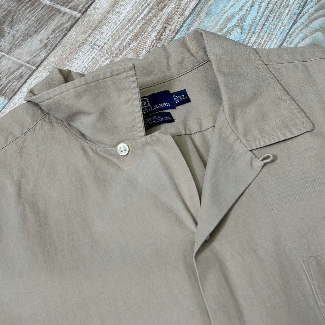 90s Polo by Ralph Lauren ポロ バイ ラルフローレン CALDWELL 半袖シャツ 完全無地 オープンカラー 開襟 タン XL