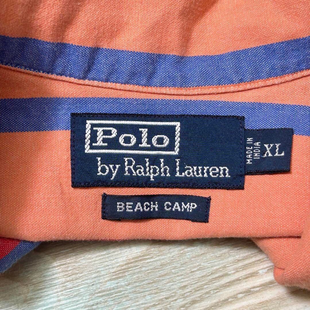 ☆夏物セール価格☆ ①希少 90s Polo by Ralph Lauren ポロ バイ ラルフローレン BEACH CAMP オープンカラー ストライプ