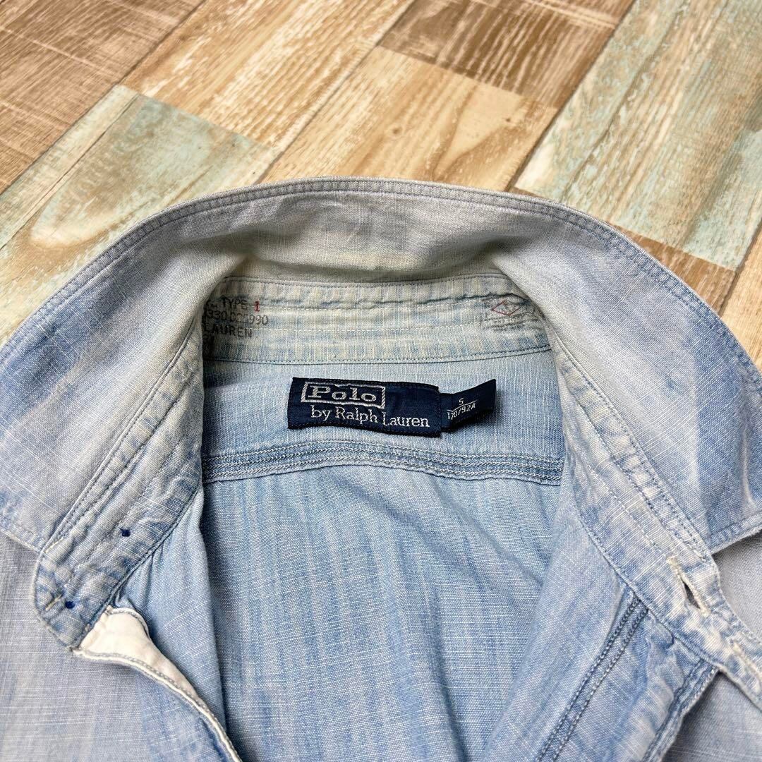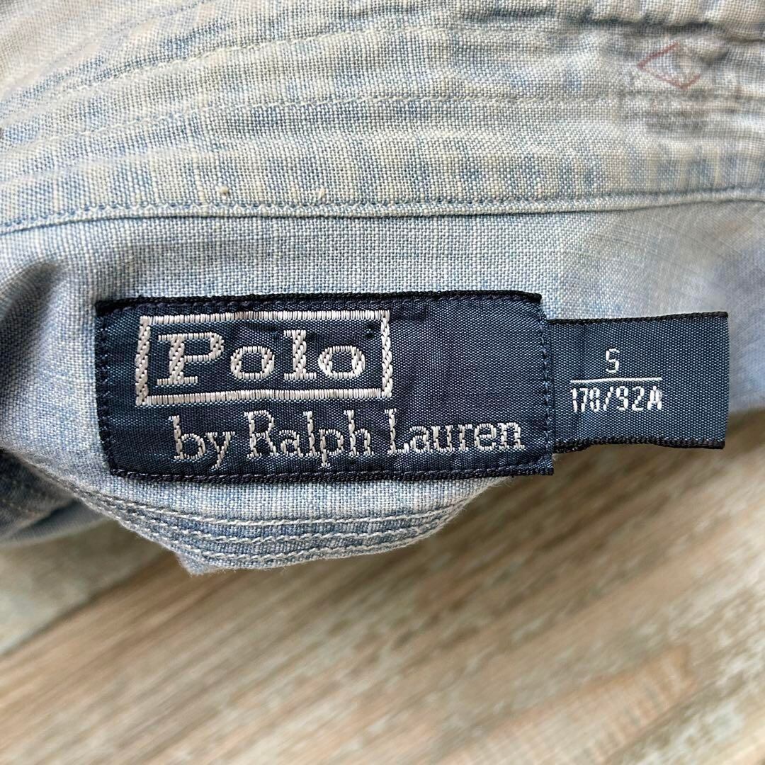 【Goodフェード】90s Polo by Ralph Lauren ポロ バイ ラルフローレン シャンブレーシャツ 長袖 チンスト マチ付き S Mサイズ相当
