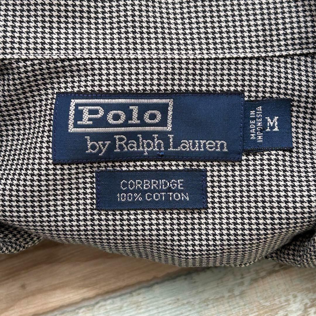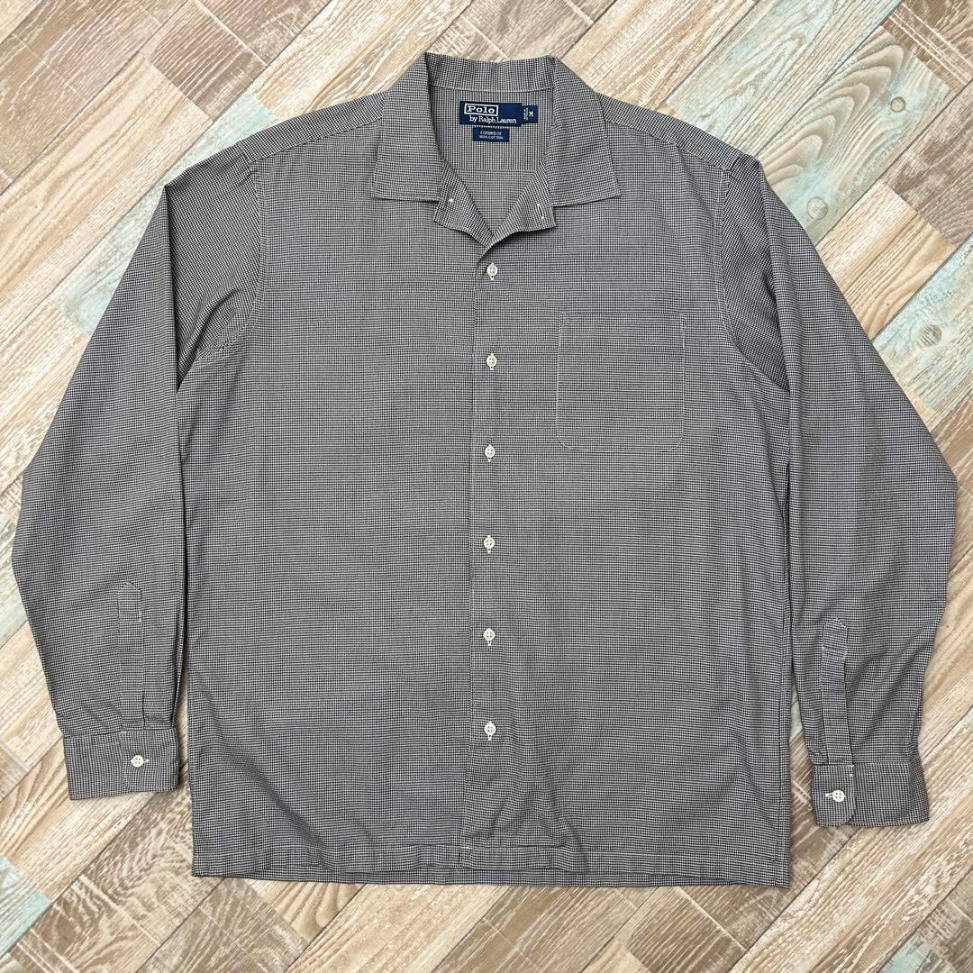 90s Polo by Ralph Lauren ポロ バイ ラルフローレン CORBRIDGE 千鳥柄 オープンカラー 黒 白 M