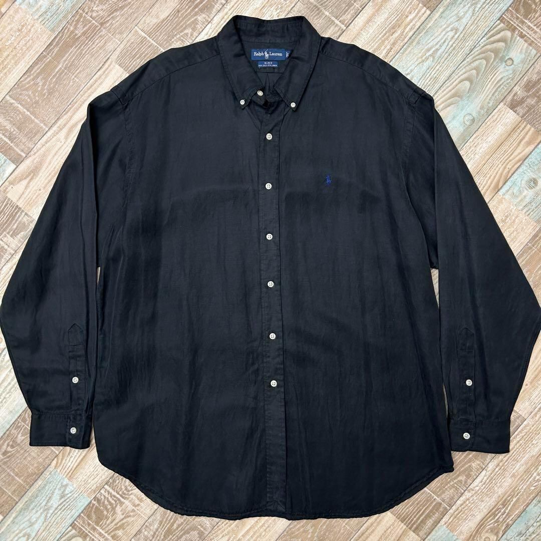 90s Polo by Ralph Lauren ポロ バイ ラルフローレン BLAKE 長袖シャツ シルク リネン ブラック XL