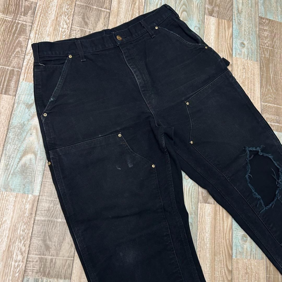 唯一無二 USA製 W36/L30 carhartt カーハート ダブルニー ブラック黒 ボロ 襤褸