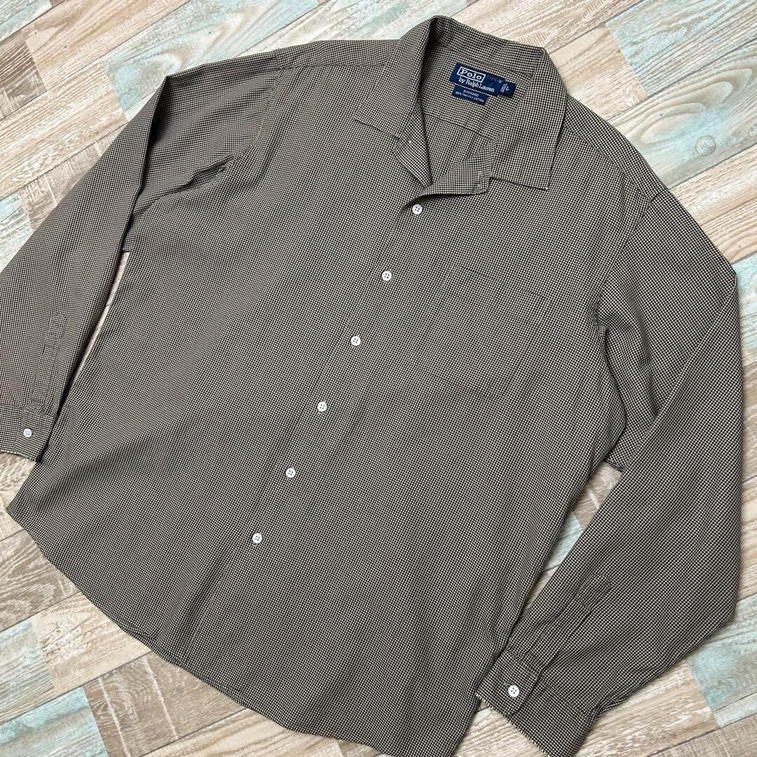90s Polo by Ralph Lauren ポロ バイ ラルフローレン BONNARD 長袖 千鳥柄 総柄 柄シャツ 開襟 L