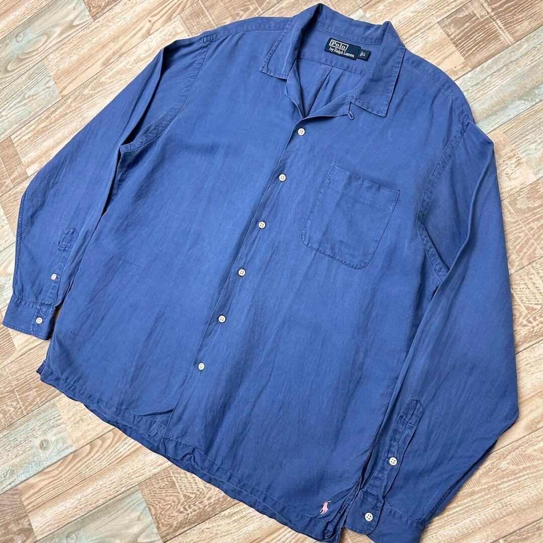 90s Polo by Ralph Lauren ポロ バイ ラルフローレン オープンカラー 無地 ポニー リネン シルク L