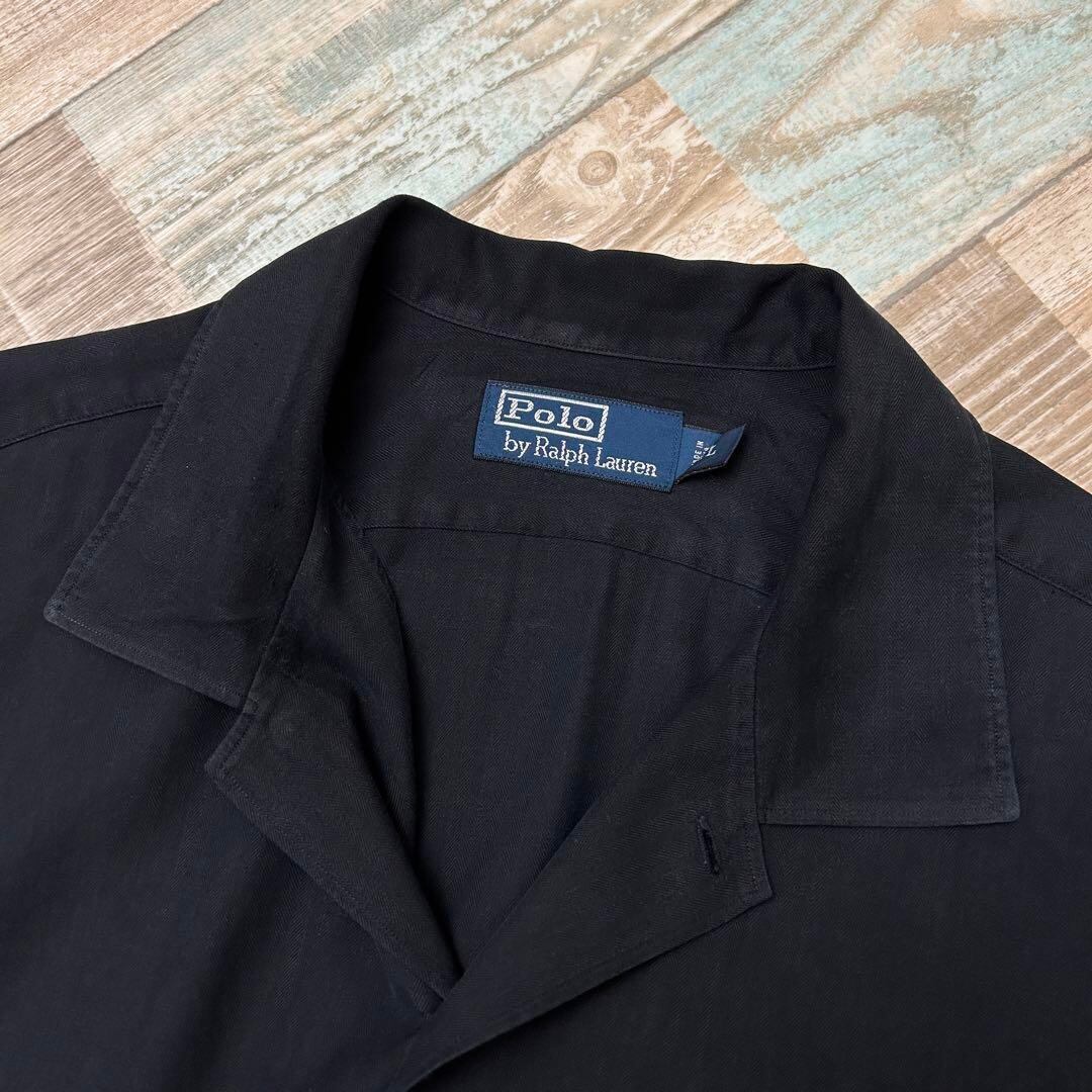 希少 90s Polo by Ralph Lauren ポロ バイ ラルフローレン ヘリンボーン シルク ブラック 無地 L