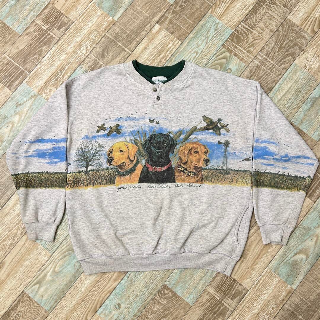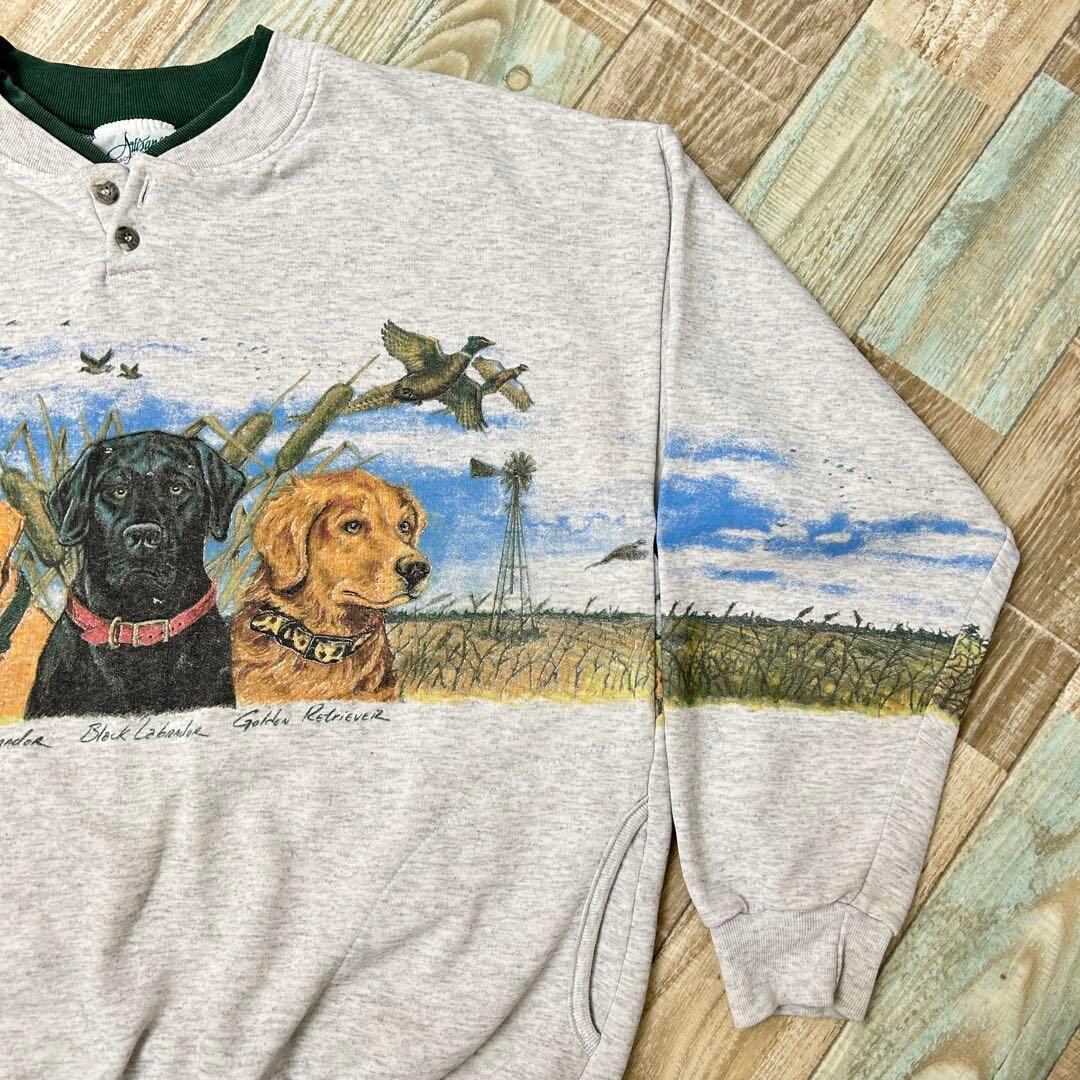希少 USA製 Artisans スウェット ヘンリーネック ラブラドール 犬 ハンティング L 短丈