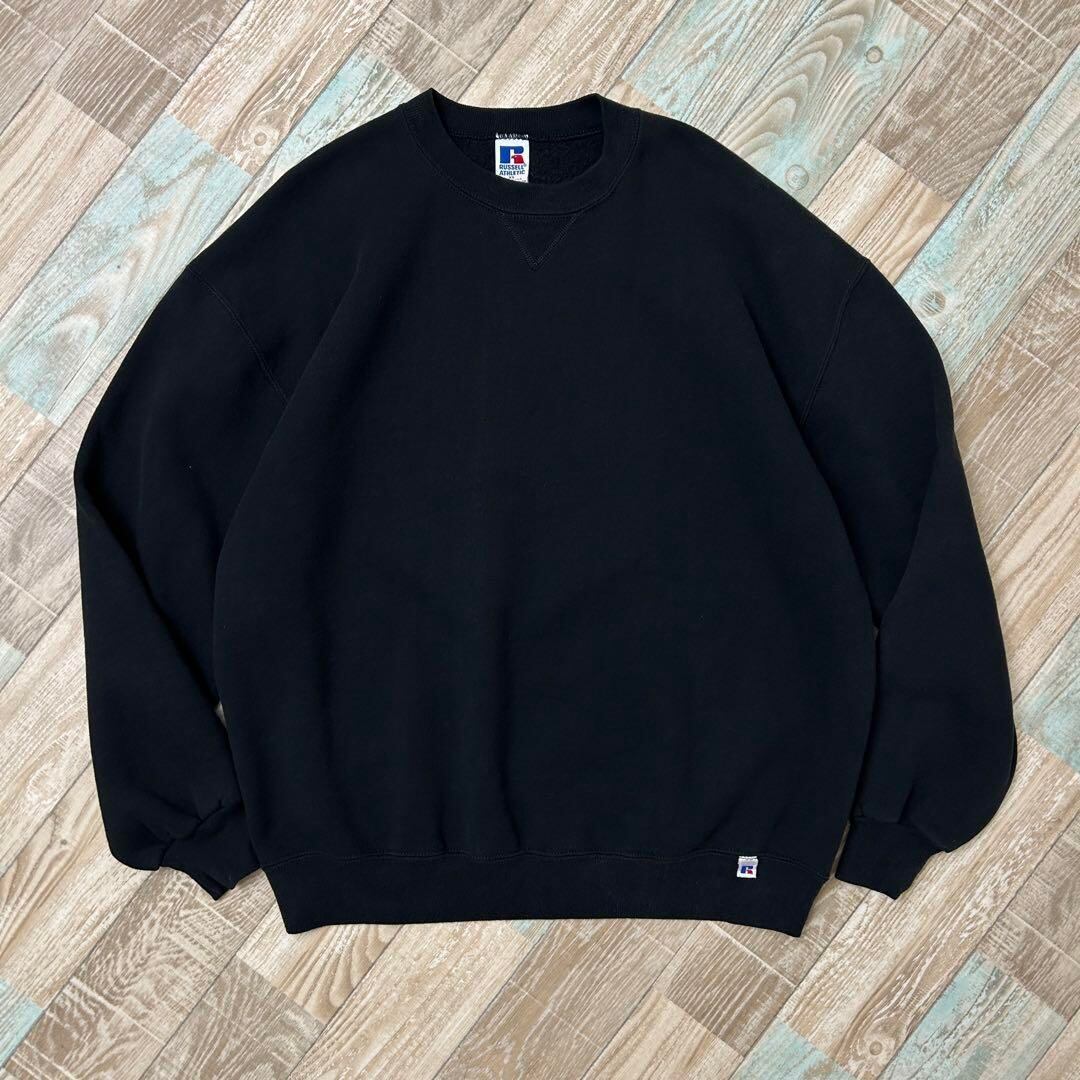90s USA製 RUSSELL ラッセル 無地 スウェット 前V ブラック 黒 XL
